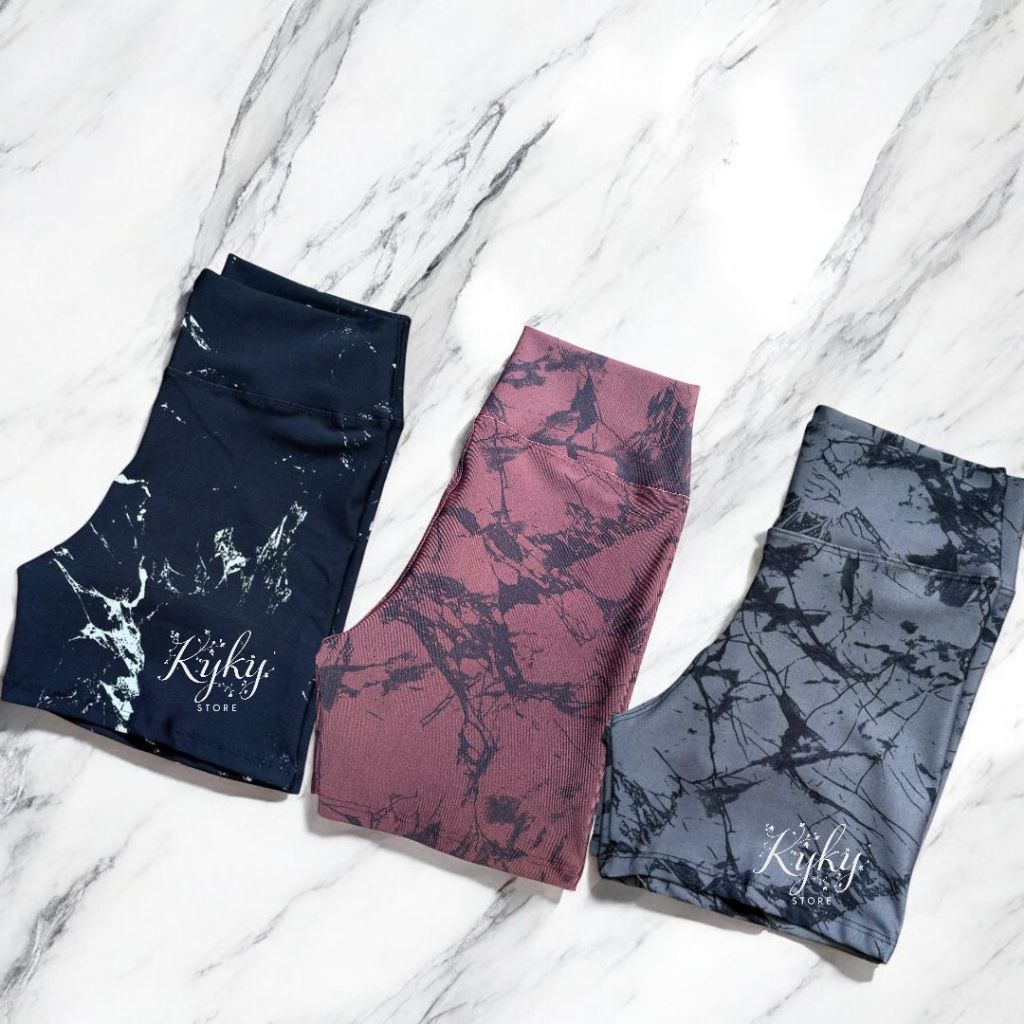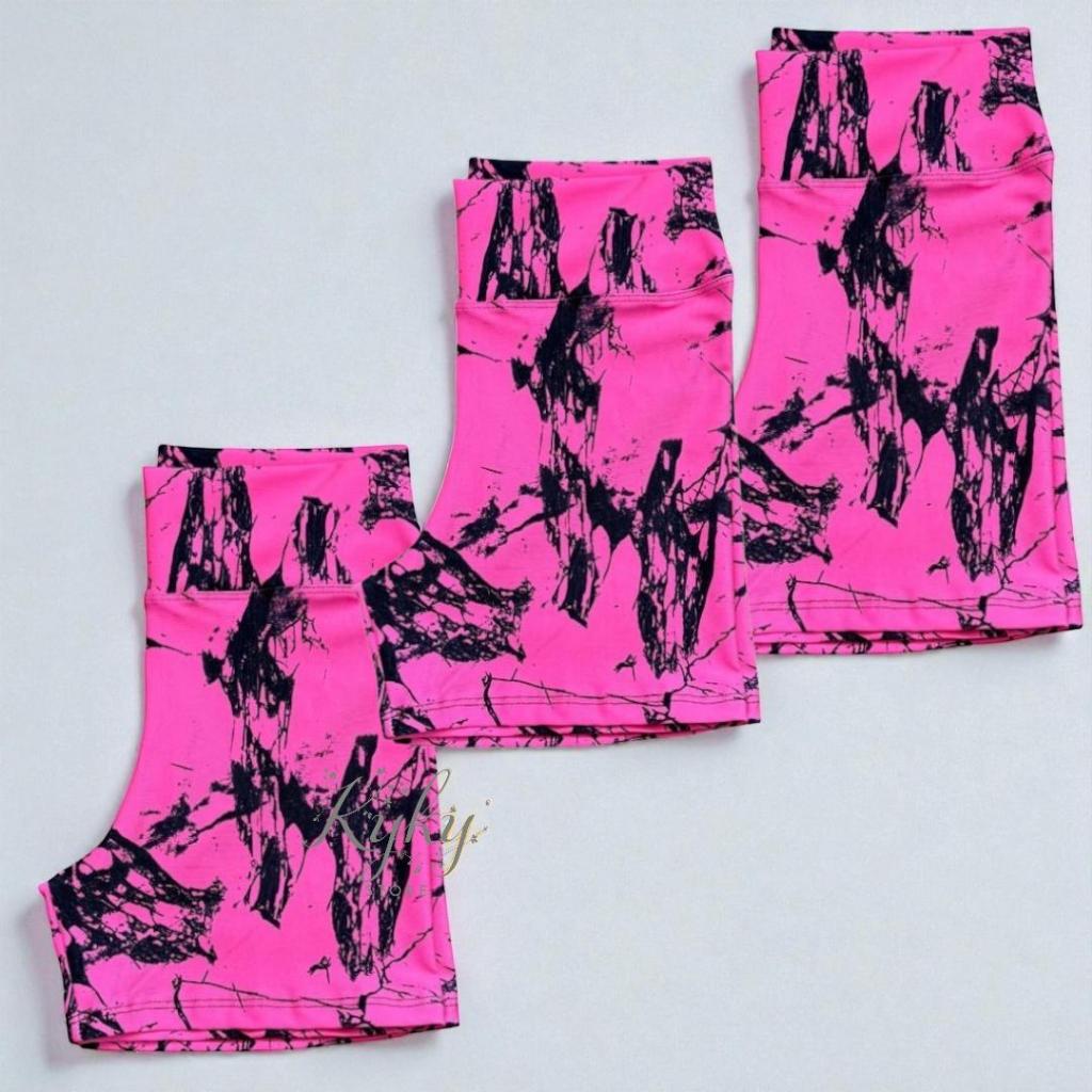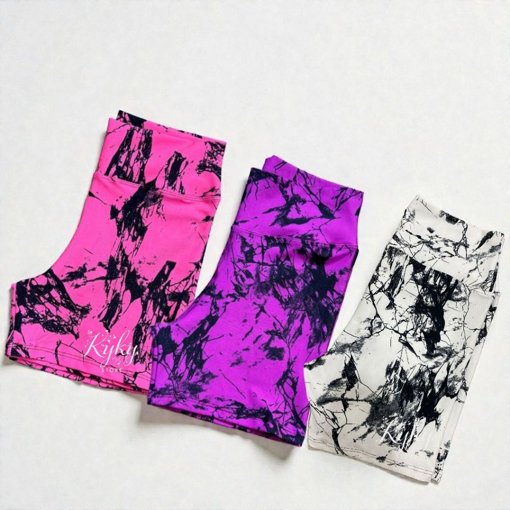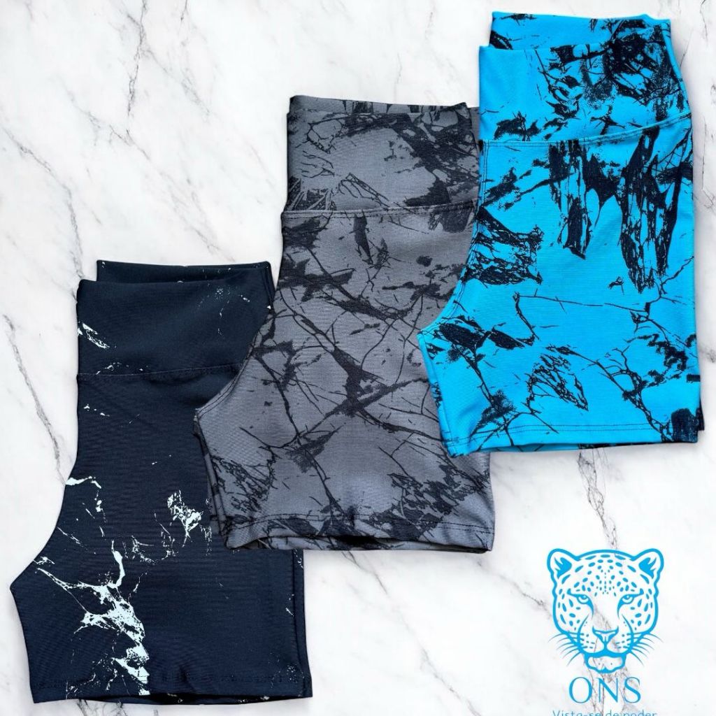 Kit 3 Shorts Marmorizado Roupa Fitness Cintura Alta Feminino Tie Dye Zero Transparencia Academia