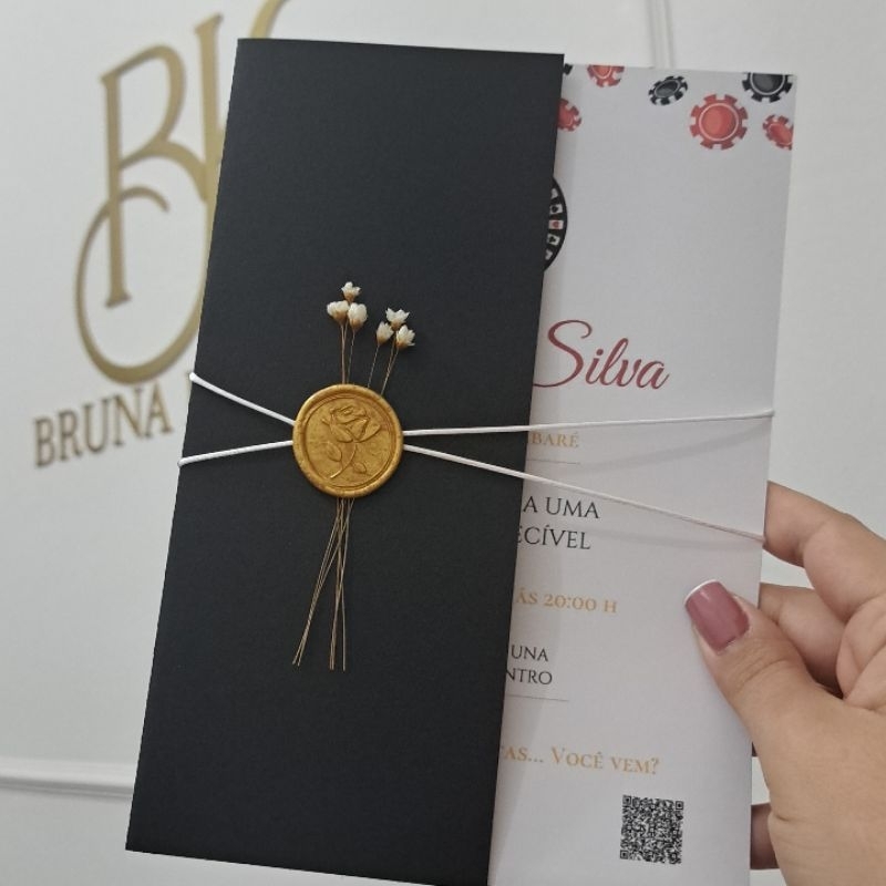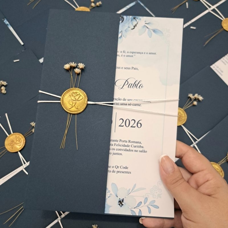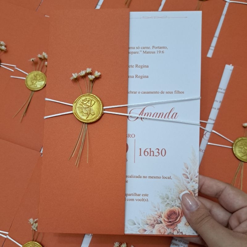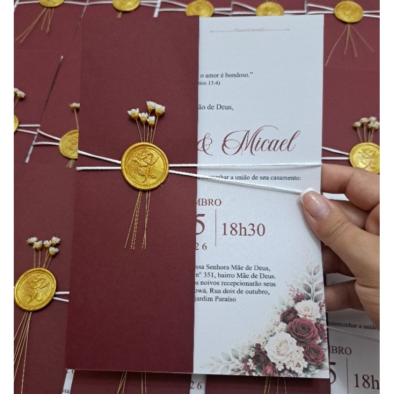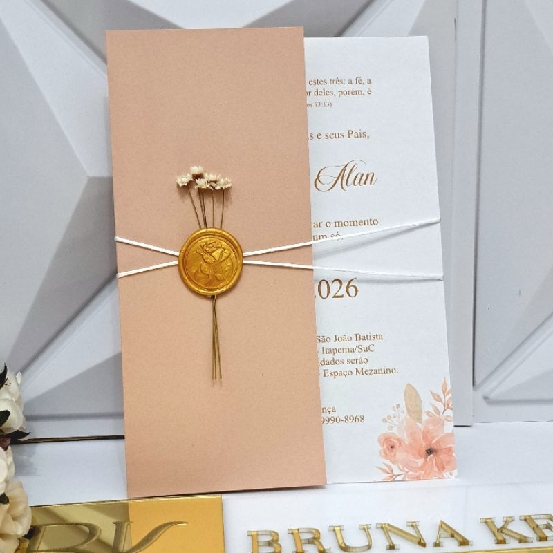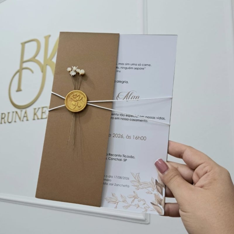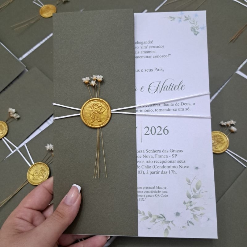Convite de Casamento Verde Oliva com Lacre de Cera | Convite Love Personalizado | Modelo Elegante Clássico