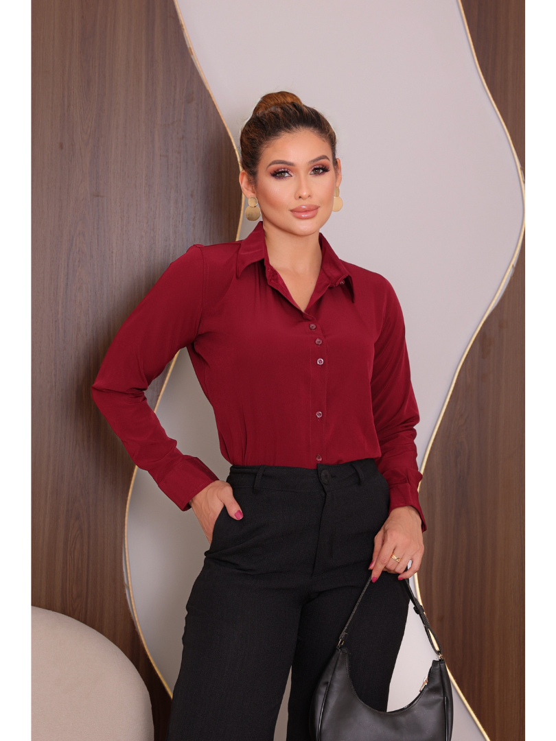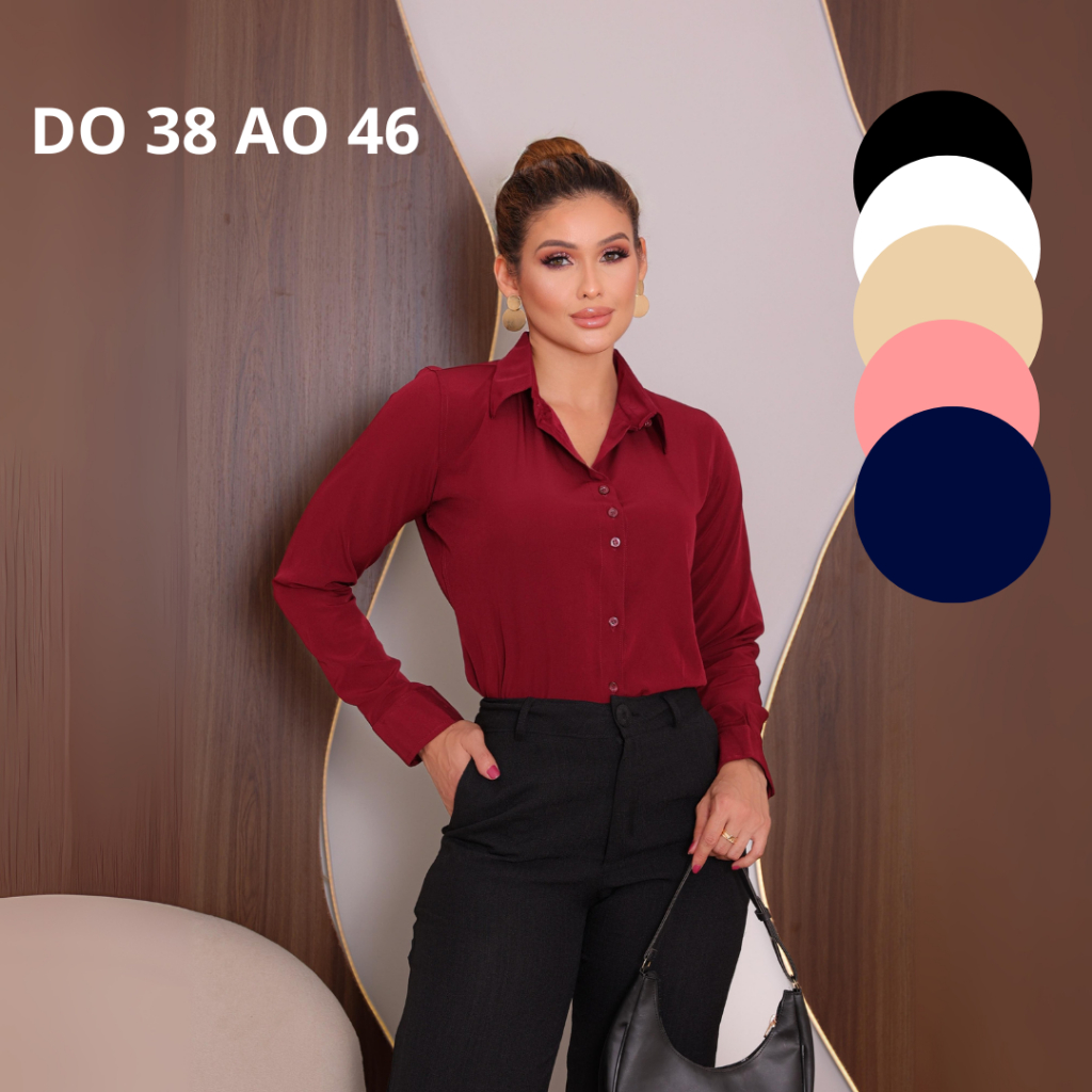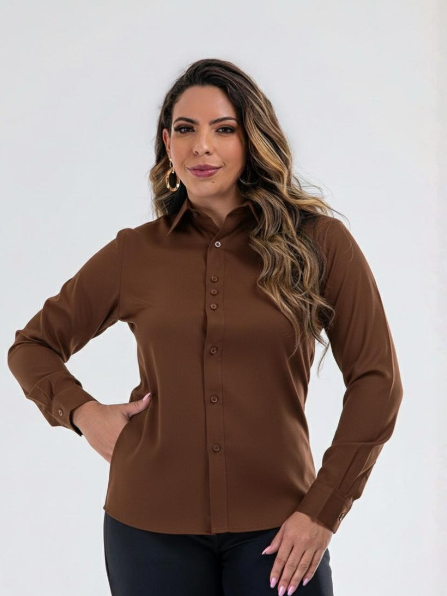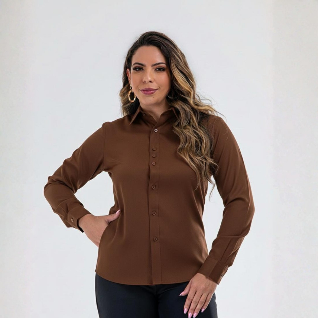 Camisa Social Feminina Alfaiataria Premium Manga Longa para Trabalho Escritório Executiva Tecido Crepe