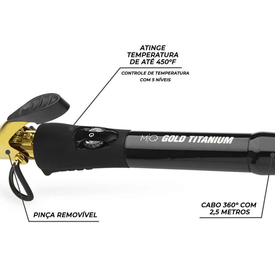 Modelador de Cachos MQ Professional Gold Titanium com pinça 32mm Bivolt