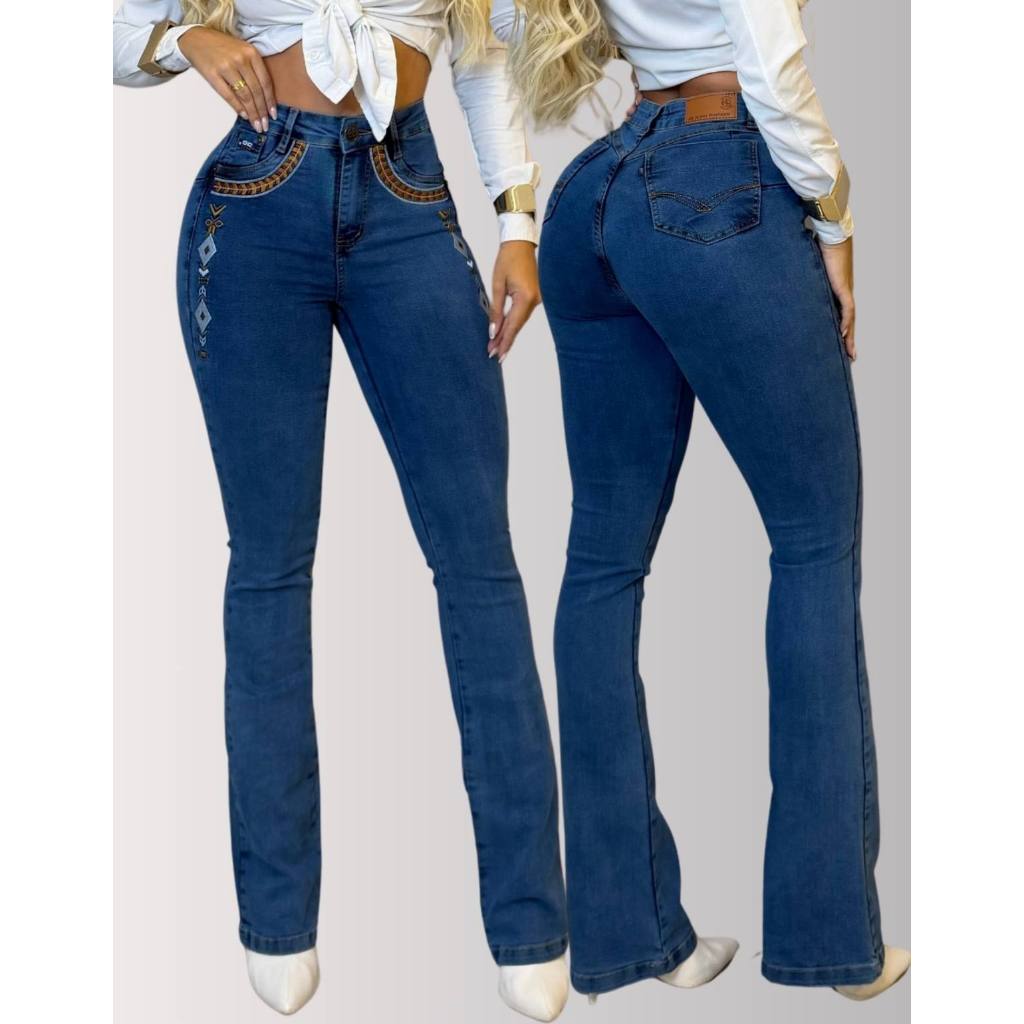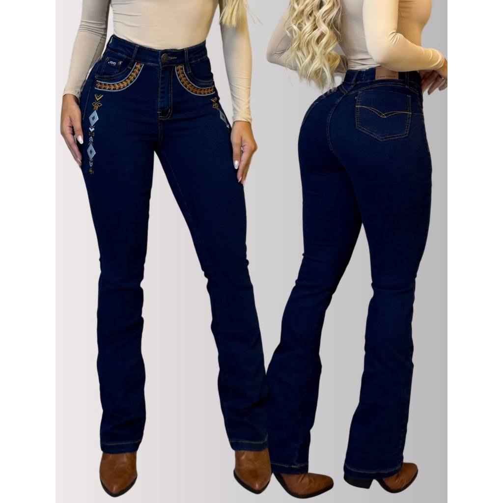 Calça Jeans Feminina Rodeio Elastano Montaria Bordada Lycra Empina Bumbum