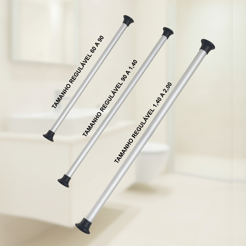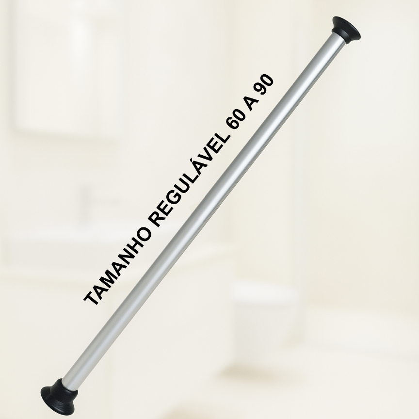 Barra Extensível de Alumínio 60 a 90cm, 90 a 1,40m e 1,20 a 2m - Cortina de Banheiro ou Cozinha