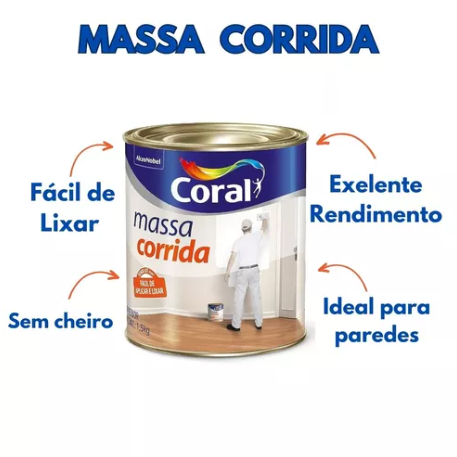 Massa Corrida Coral Pva Fácil Aplicação Branca 1,5kg