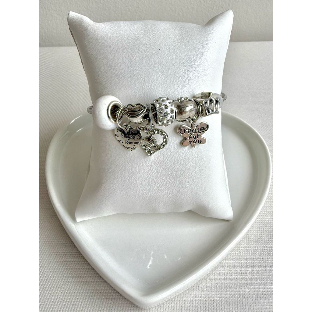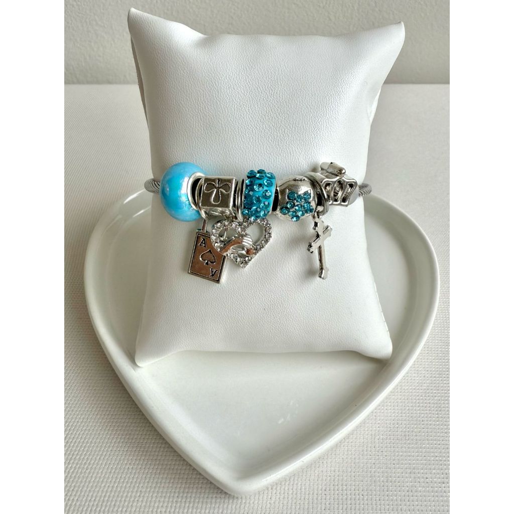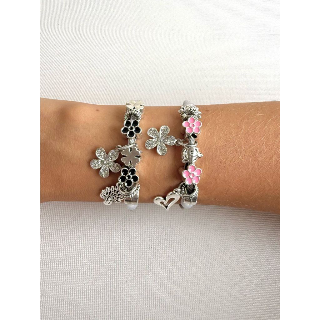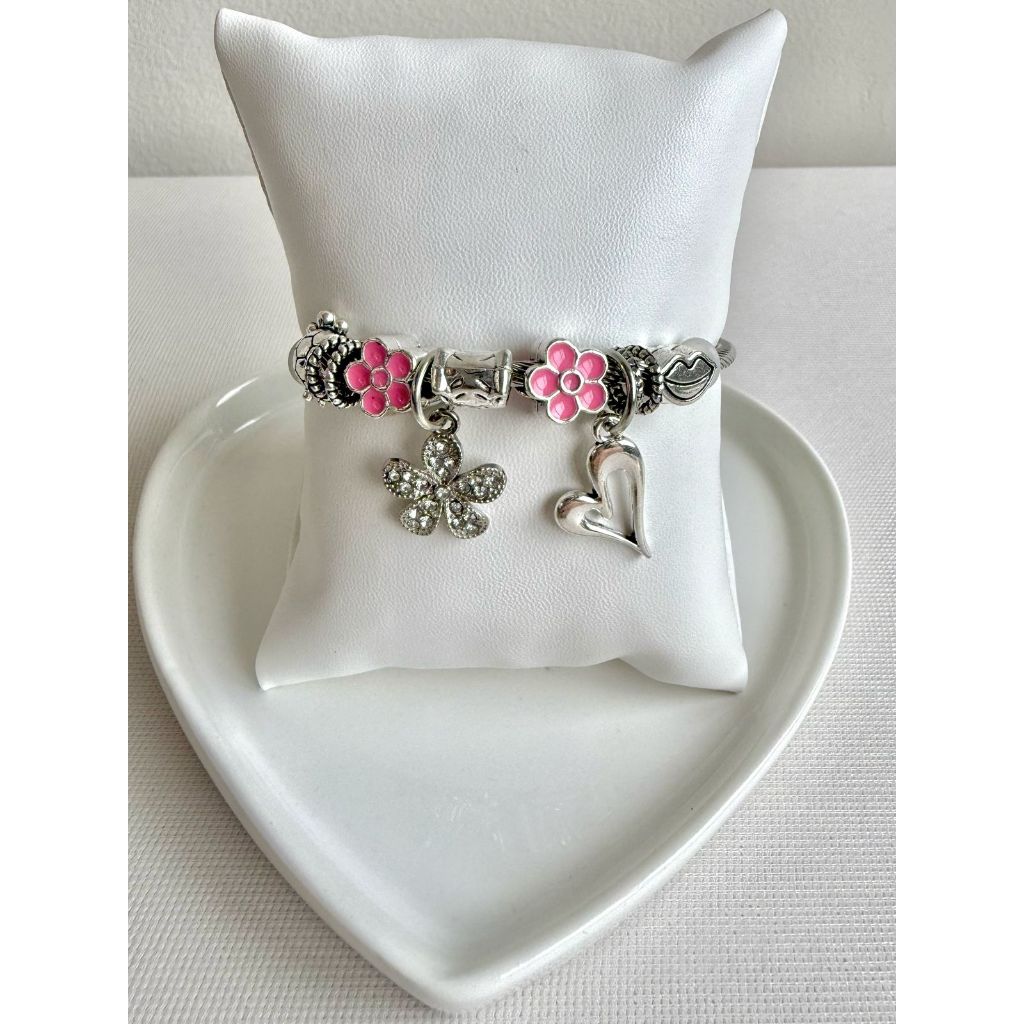 Pulseira Berloques Prateada Bracelete Pingentes Colorido Estilo Feminina Bijuteria Coração Brilho