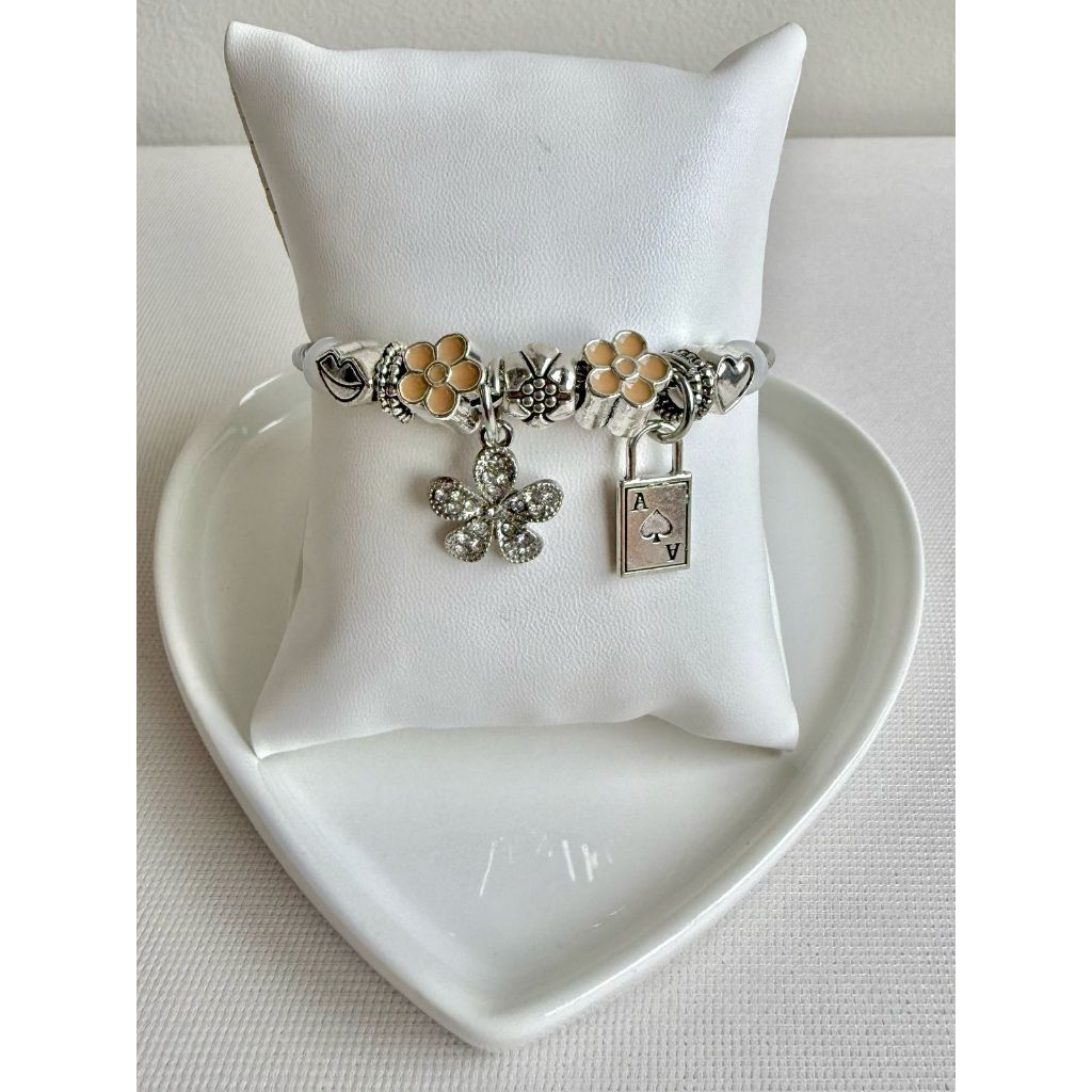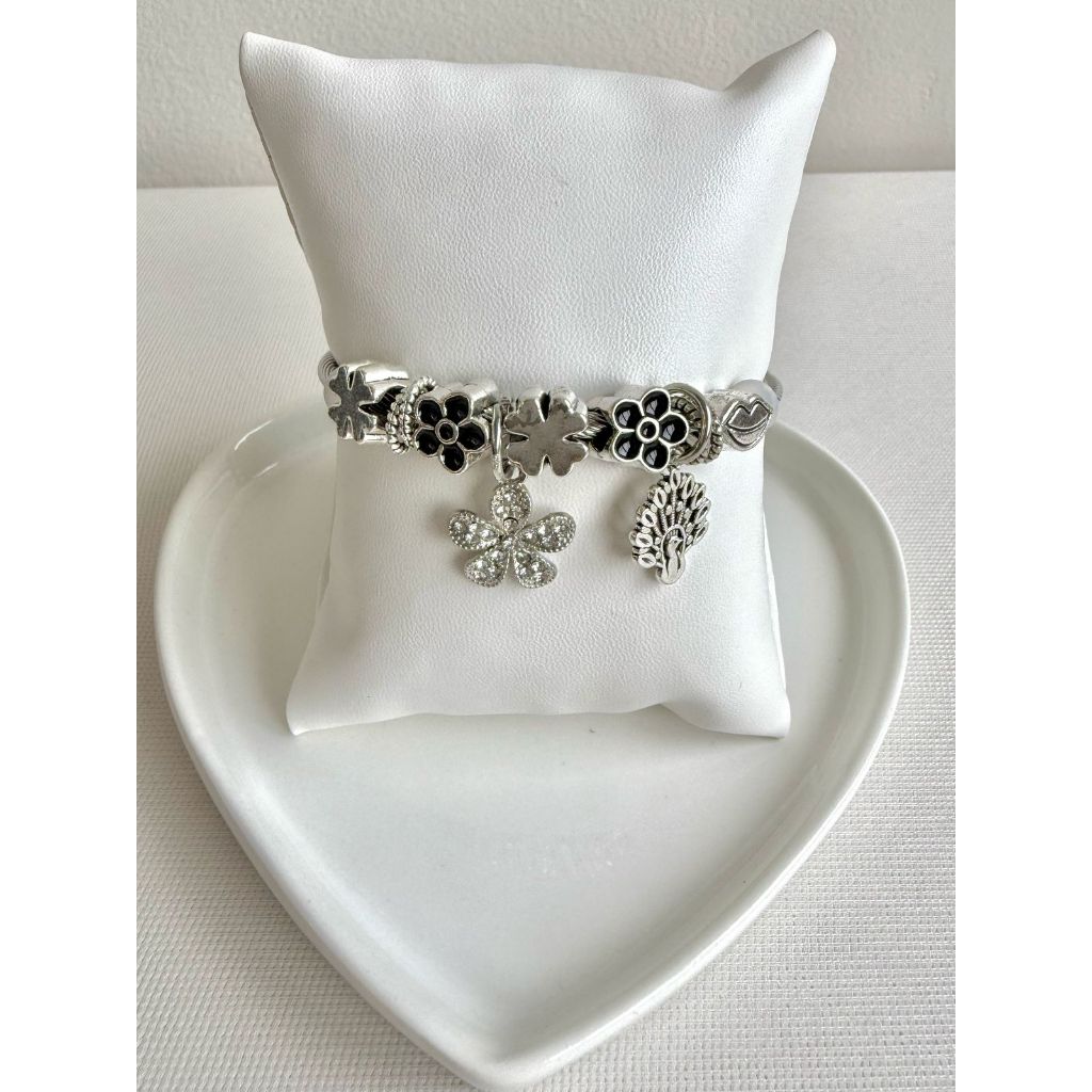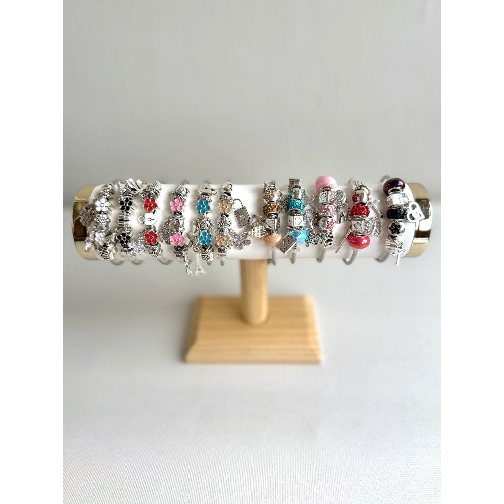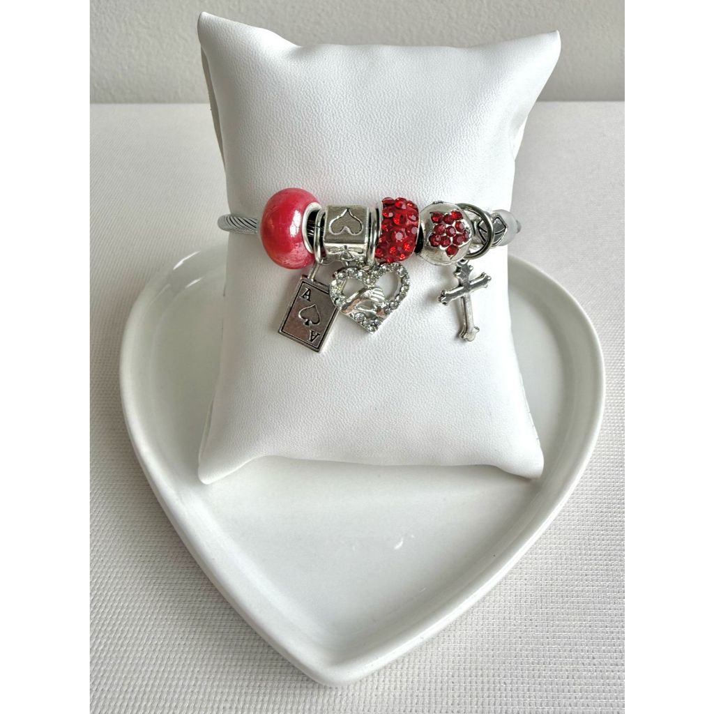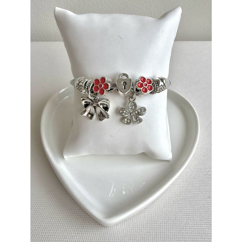 Pulseira Berloques Prateada Bracelete Pingentes Colorido Estilo Feminina Bijuteria Coração Brilho
