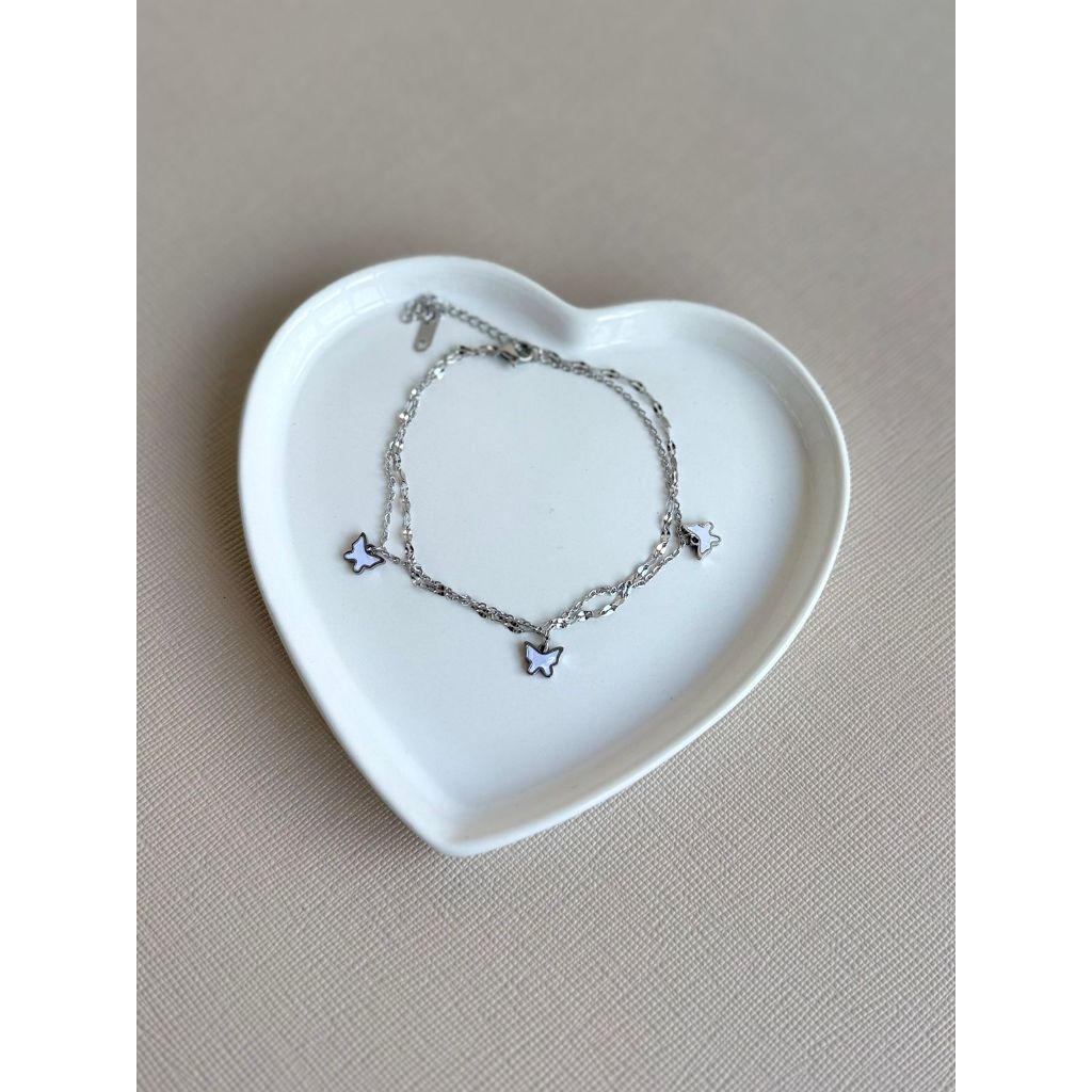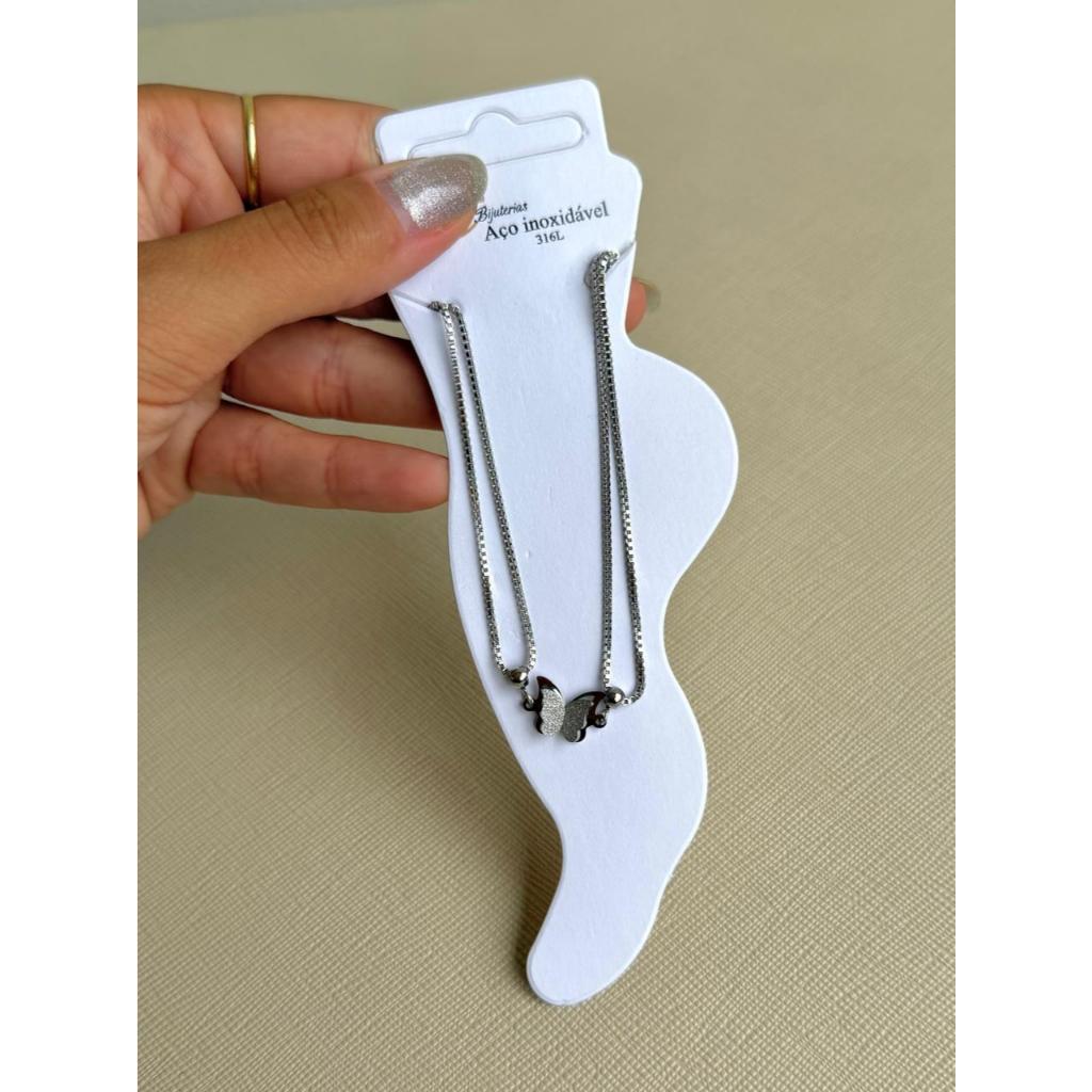 Tornozeleira Feminina em Aço Inoxidável Prata Borboleta Delicada Elegante 2 modelos Tendência Verão