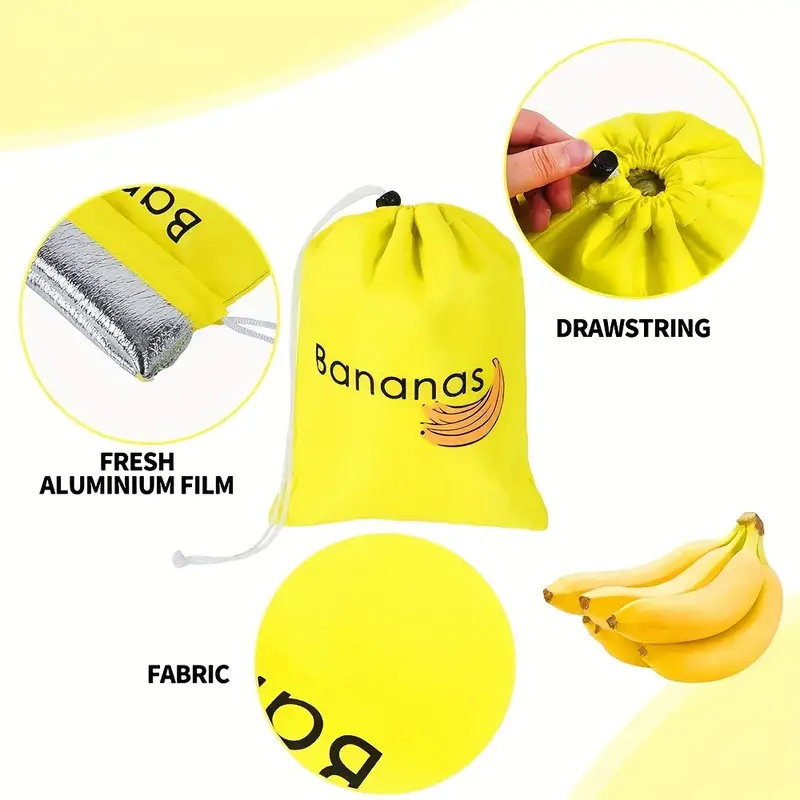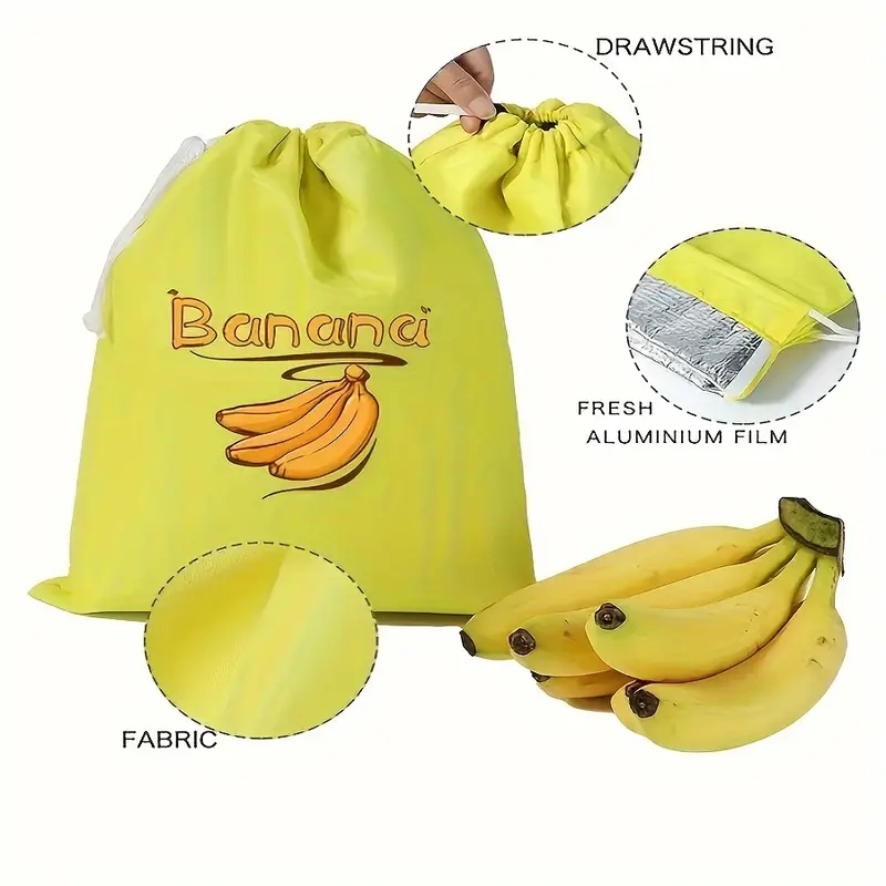 Saco de armazenamento de banana amarela com etiqueta "Banana" - Material PP durável e lavável
