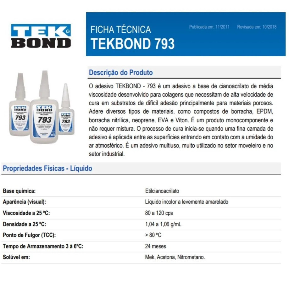 Kit 10 tubo de Cola Instantânea Tek Bond 793 20g super bonder multiuso