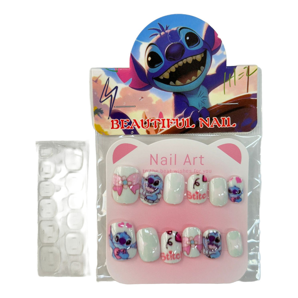 Unhas realistas Para Crianças unhas Postiças moda infantil personagem lilo stich+ADESIVO DUPLA FACE