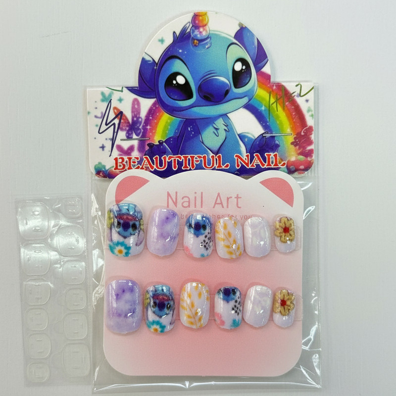 Unhas Postiças Infantil Crianças + adesivo dupla face moda de menina unhas coloridas LILO STICH