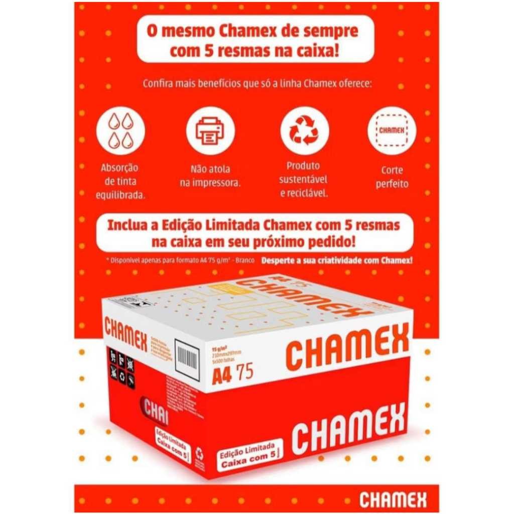 Chamex 2500 Folhas Papel sulfite A4 75g 210x297 Pacotes