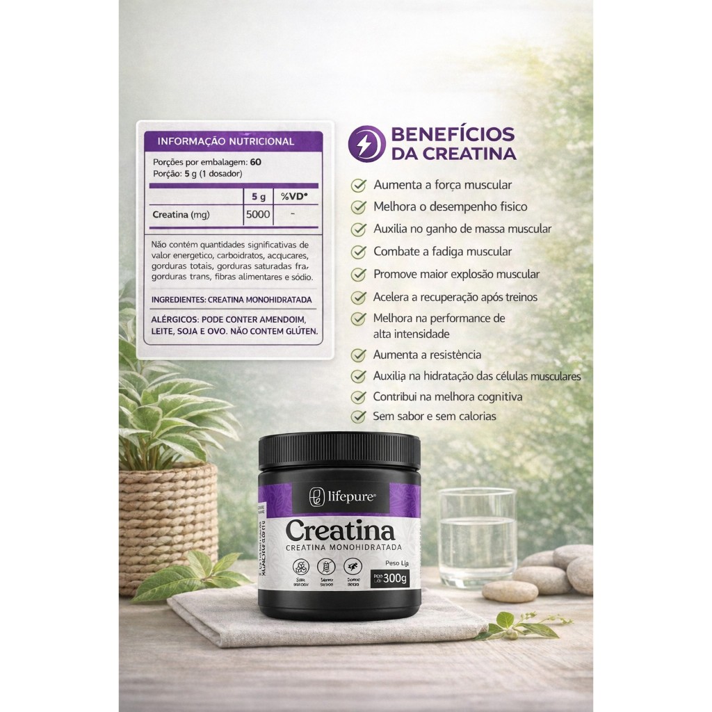 Kit 2x Creatina 100% Pura Monohidratada 300g Lifepure Suplemento Muscular Força Treino Performace