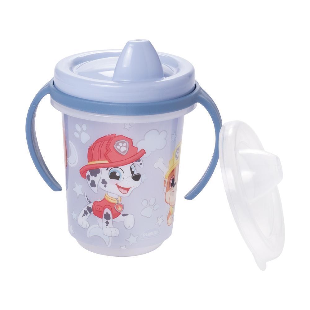 Copo Caneca Com Alça de Treinamento Infantil para Bebê Patrulha Canina com Bico de Plástico e Tampa 330 ml Plasutil