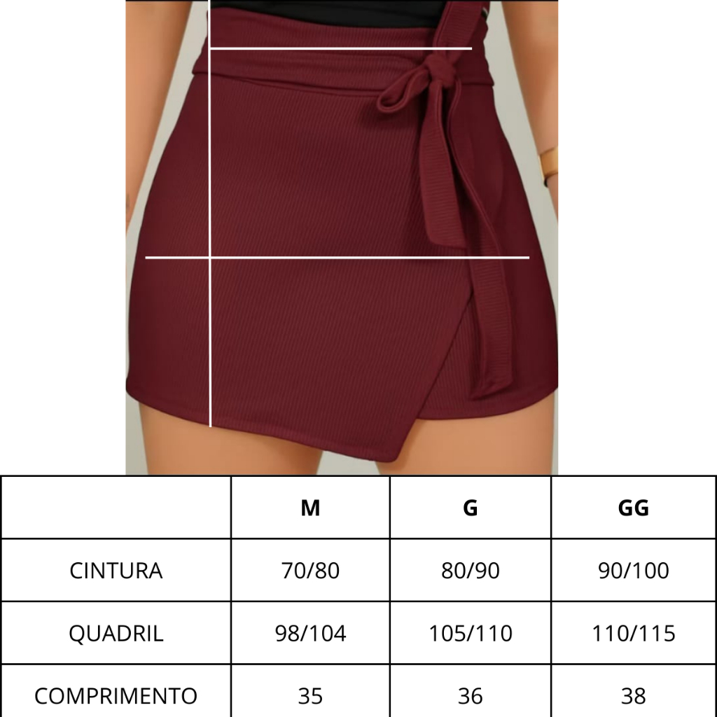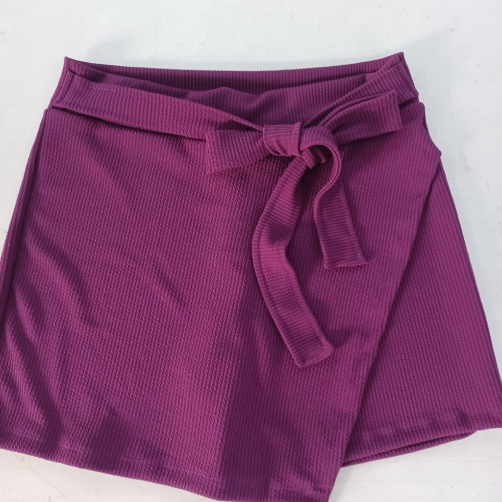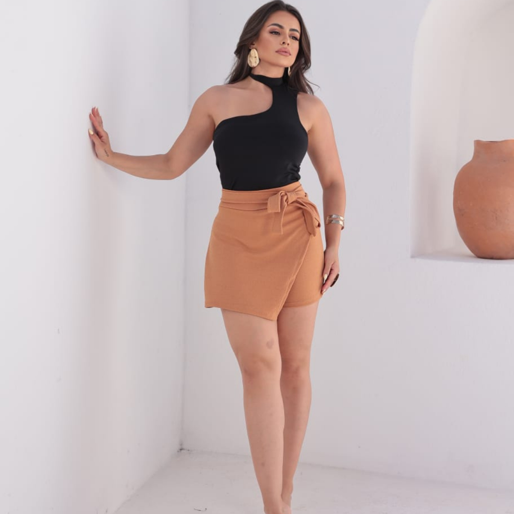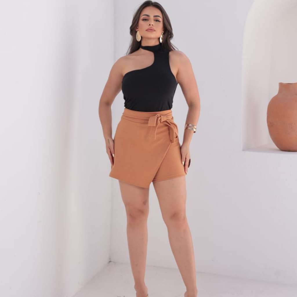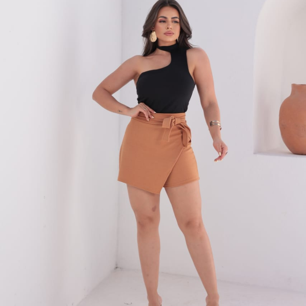 Short Saia Feminino,em anarruga marrante laço Frontal Detalhe Assimetrico Cintura Alta do M ao GG tendencia. Tendencia.