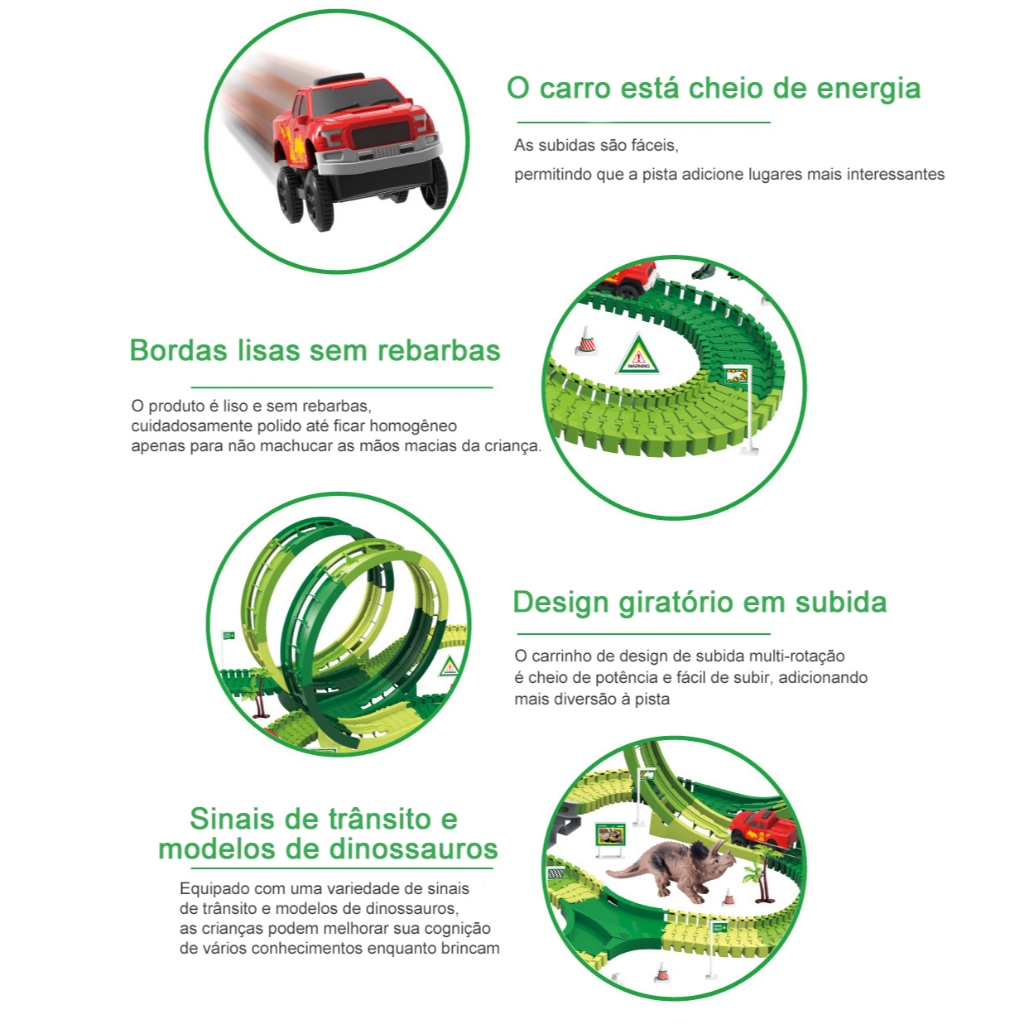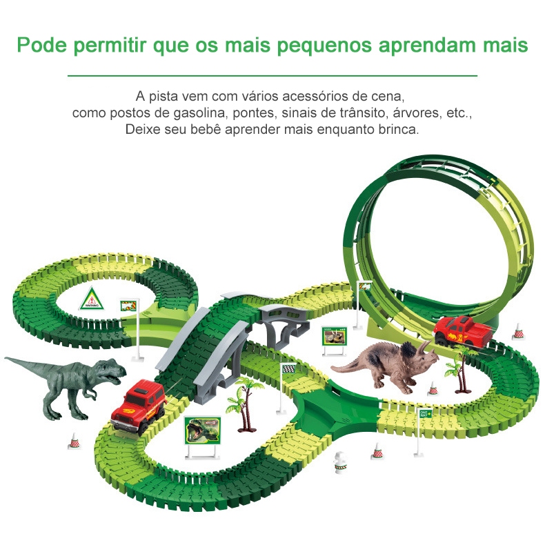 195 peças carrinho Radical de circulação de pista de dinossauro carrinho de brinquedo elétrico DIY com pista
