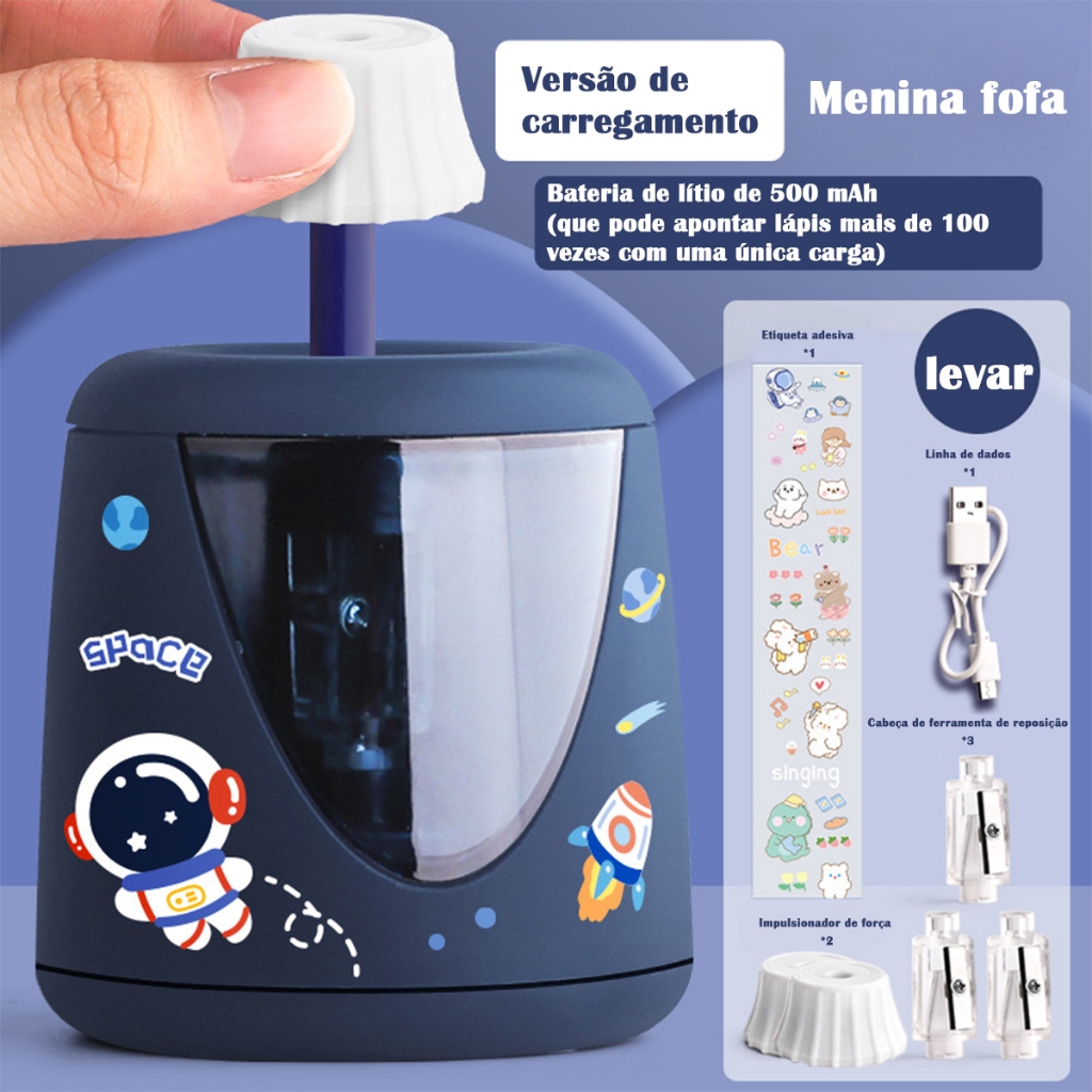 Apontador elétrico com 2 furos,Adequado para lápis de 6-12 mm,Afiador de lápis automático multifuncional para mesa