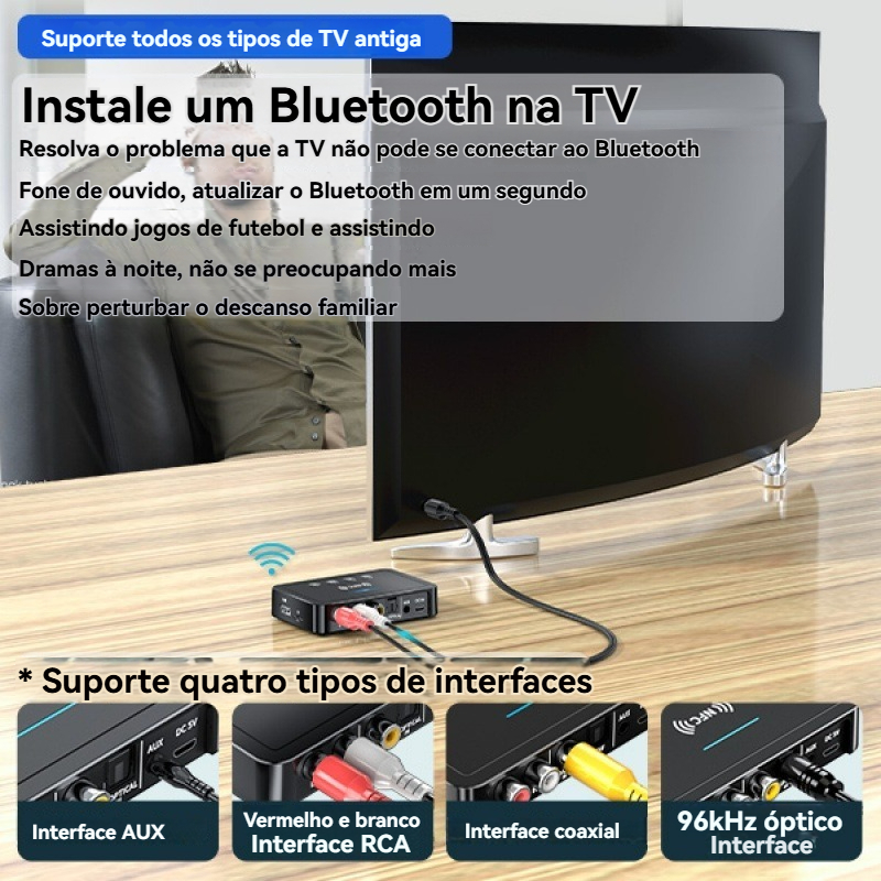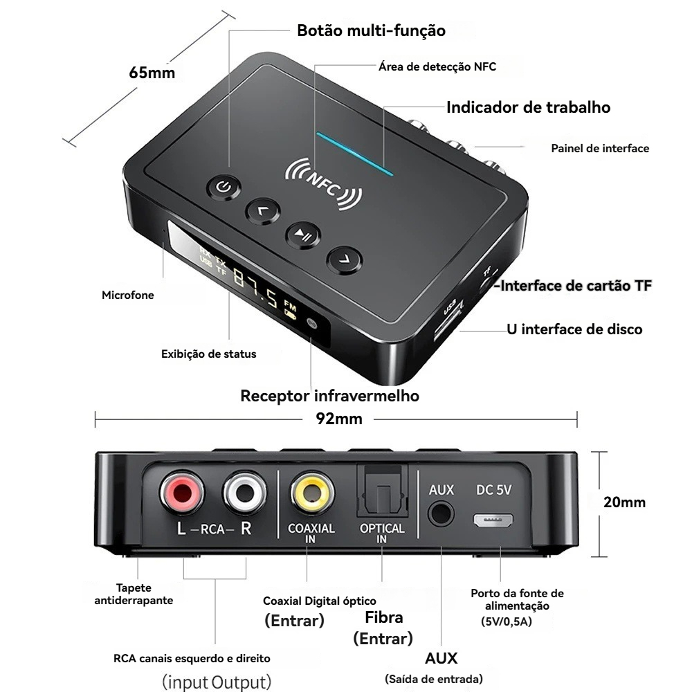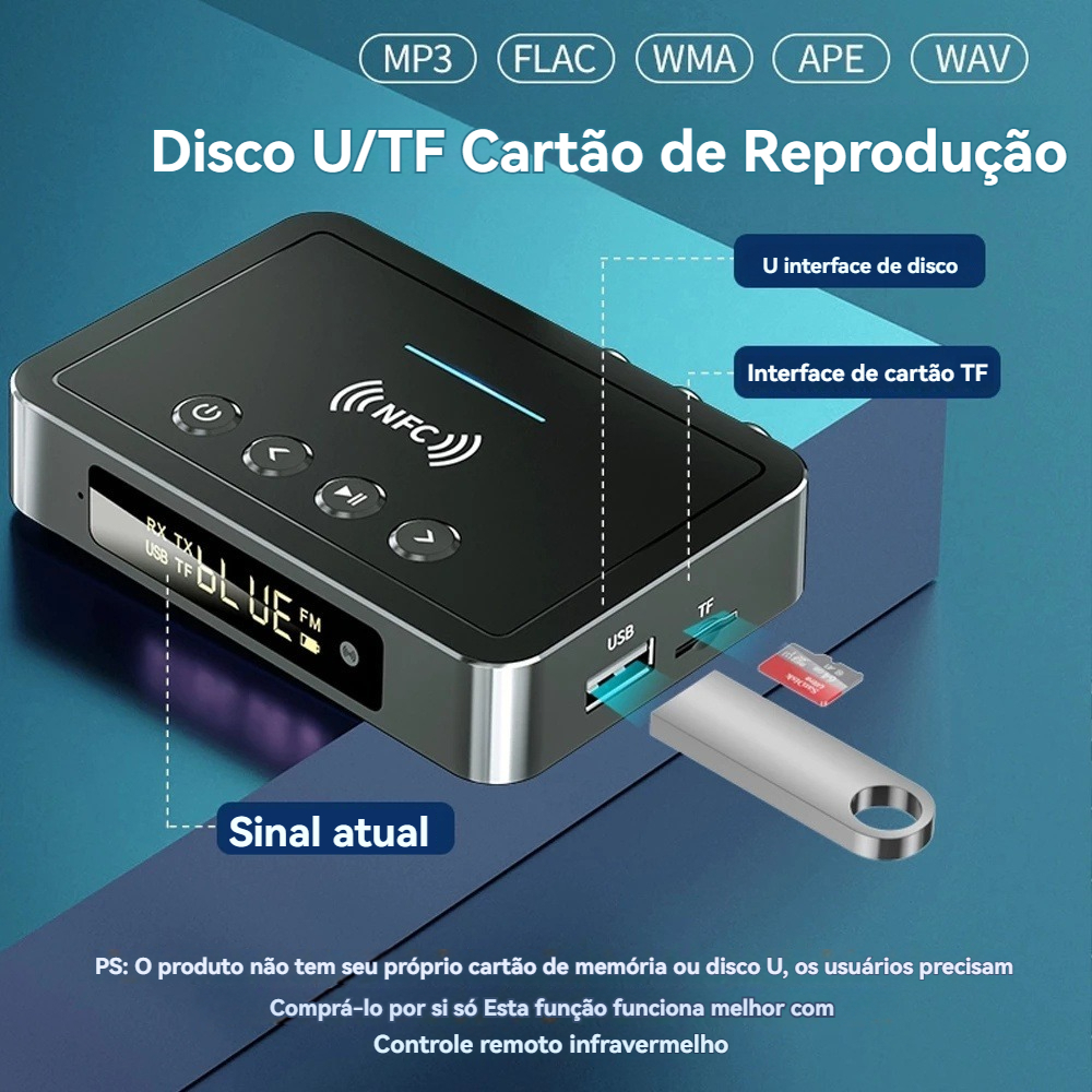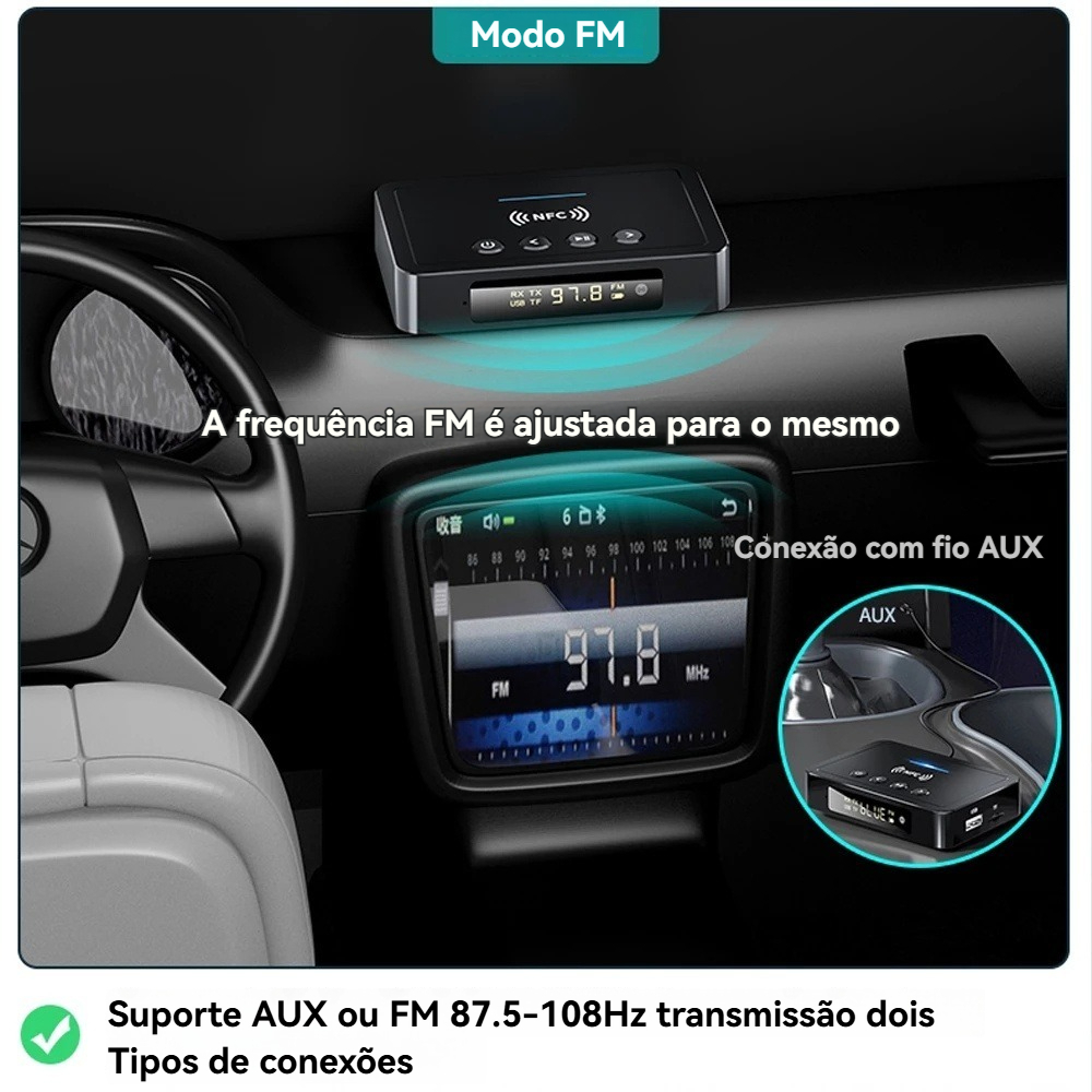 M6 NFC Bluetooth 5.3 Adaptador De Áudio 3.5 Mm Aux RCA SPDIF Receptor FM Sem Fio Transmissor Suporte TF