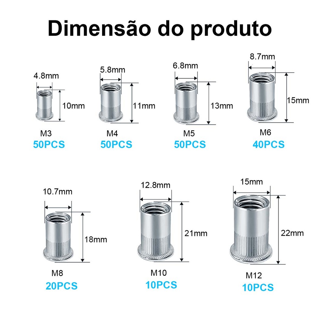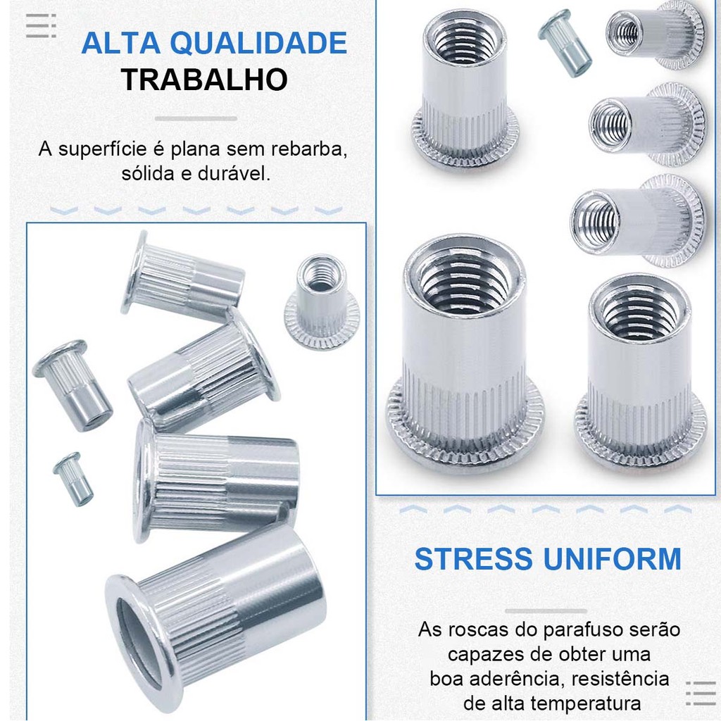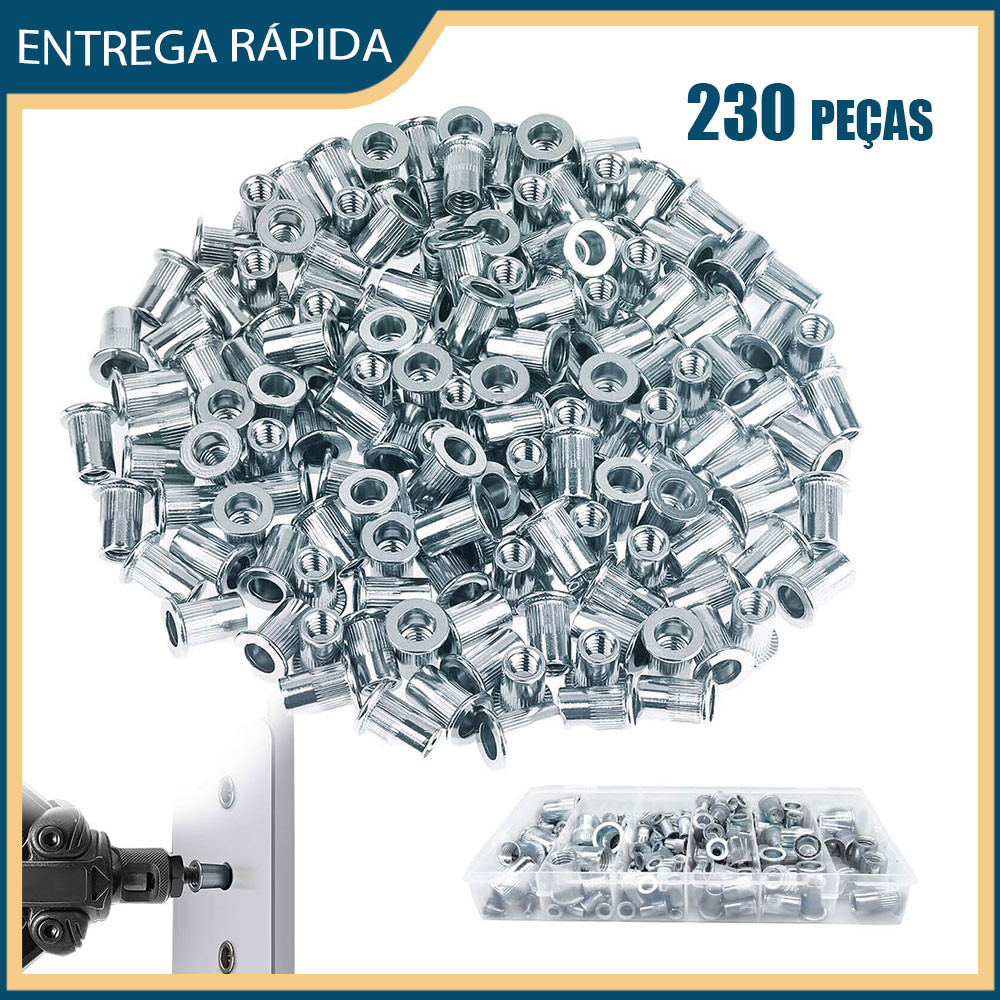230 peças conjunto rebite porca parafuso puxar tampa rebite cabeça plana listras verticais aço inoxidável aço carbono