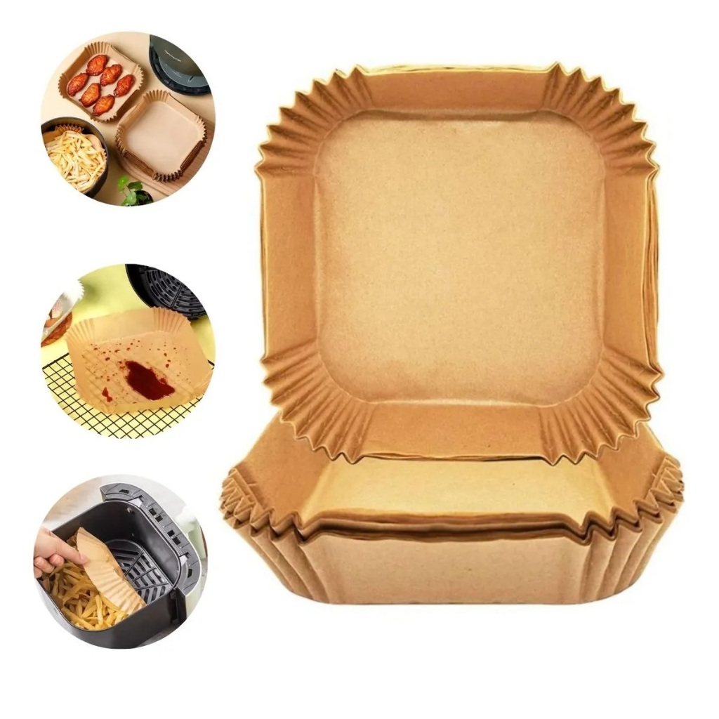 Kit 150 Formas Papel P/ Airfryer Forro Antiaderente Quadrada