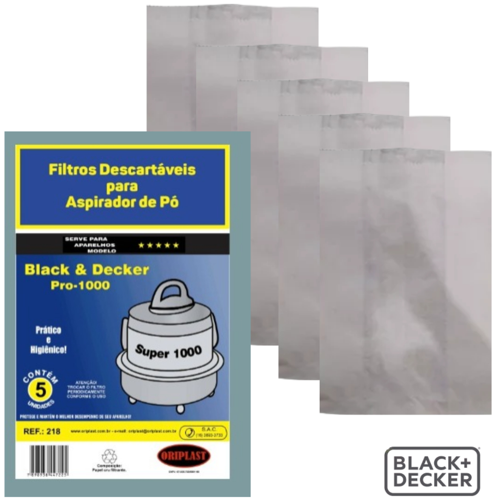 Saco filtro Aspirador De Pó Compatível Com Black Decker Descartável Modelo Super Pro 1000