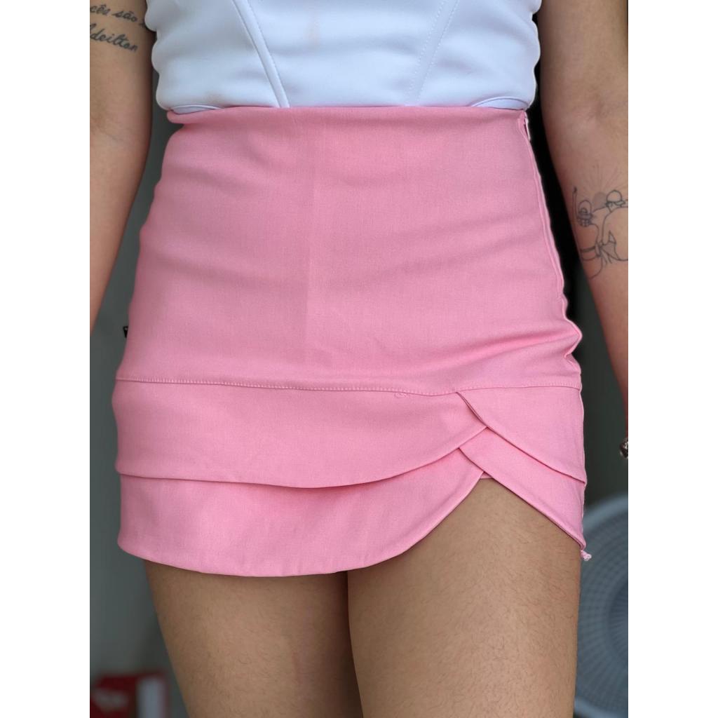 Short Saia Alfaiataria Poliamida Feminino Cintura Alta Com Zíper Tendência Alto Verão
