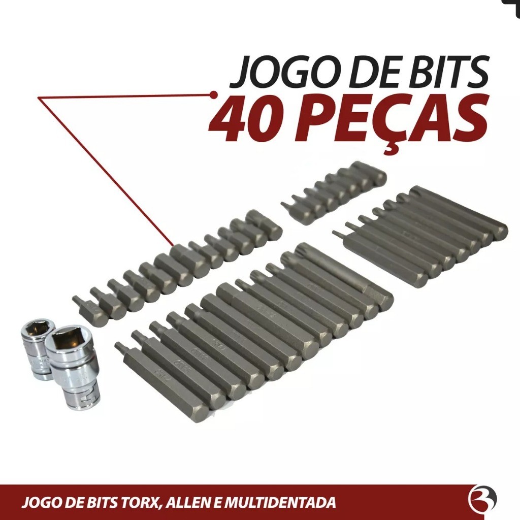 Jogo De Ferramentas 40 Peças Bit Torx Allen Multidentado Crv
