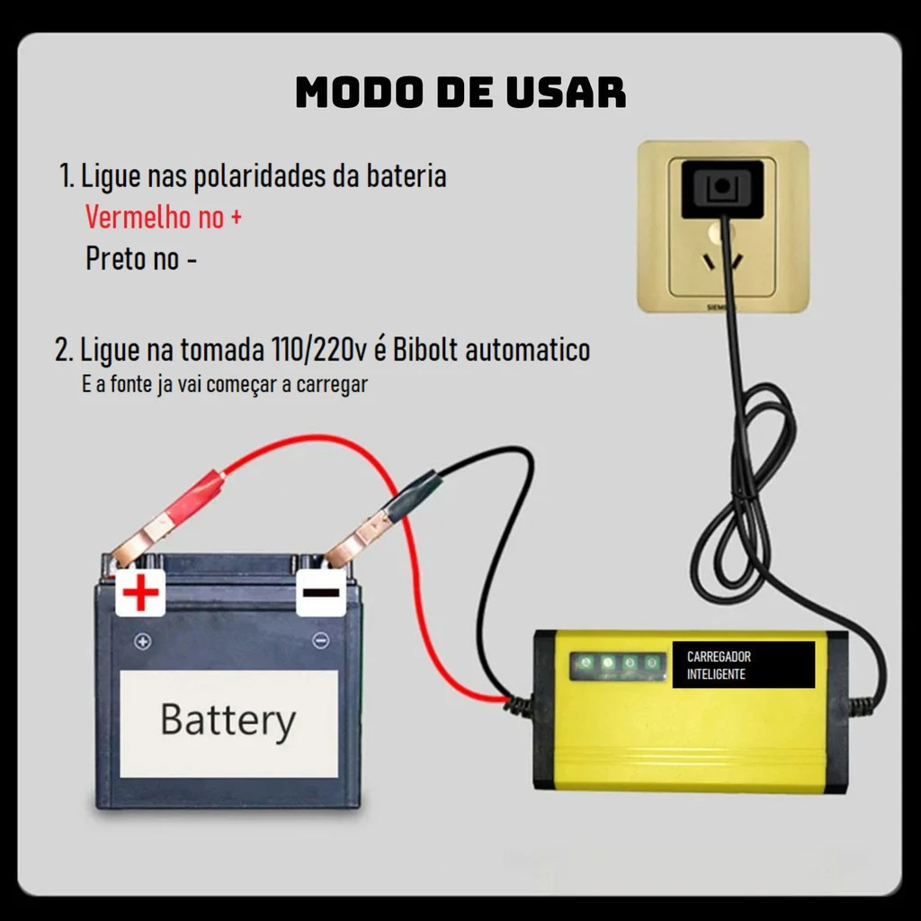 Carregador de bateria portátil, carregamento rápido para automóveis e motociclos - com indicação digital
