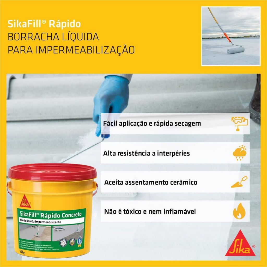 Manta Líquida Cinza Impermeabilizante Para Lajes SikaFill® Rápido Balde 15kg- SIKA