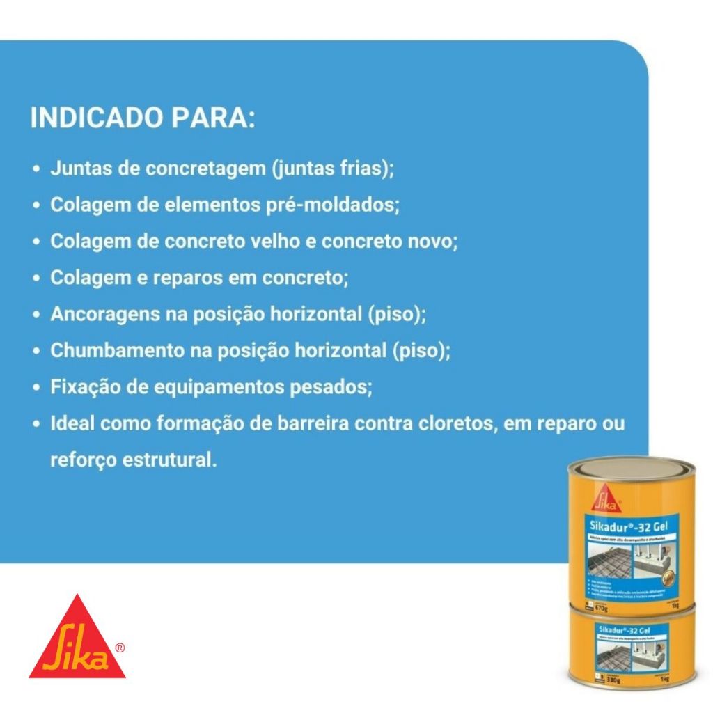Colagem e Ancoragem de Concreto - Sikadur®-32 Gel Cinza 1 kg - SIKA