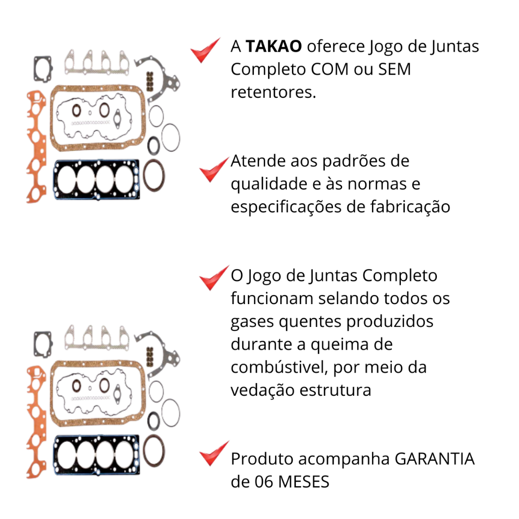 JOGO DE JUNTA COMPLETA C/ RETENTORES TAKAO PARA CHEVROLET CELTA 1.0L 8V 2001 Á 2016 JCRGM10A