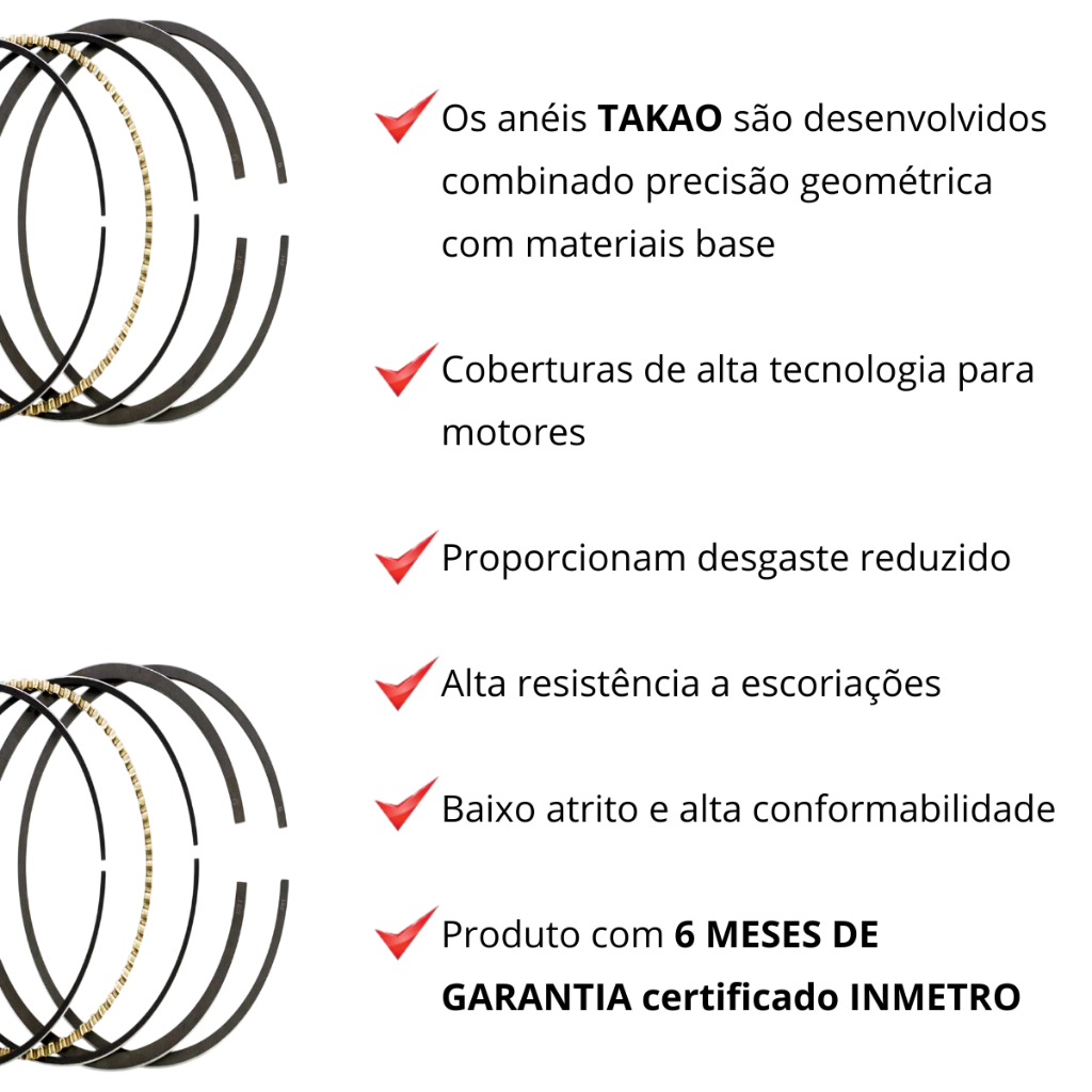 JOGO DE ANEIS STANDER TAKAO PARA JAC J6 T6 2.0 16V 2011 Á 2017 ASMI21A/STD