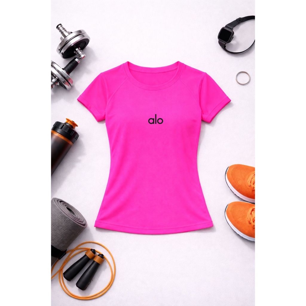 Camiseta Dry Fit Feminina Manga Curta Yoga Baby Look Não Encole Rosa Pink Outros
