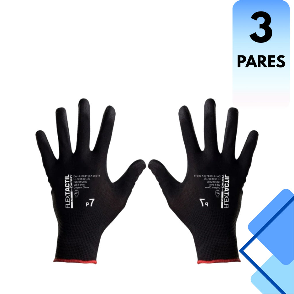 KIT 3 ou 1 PAR LUVAS DE PROTEÇÃO PRETA ANTIDERRAPANTE MULTITATO EPI SEGURANÇA TRABALHO MECÂNICO ANTIESTATICA