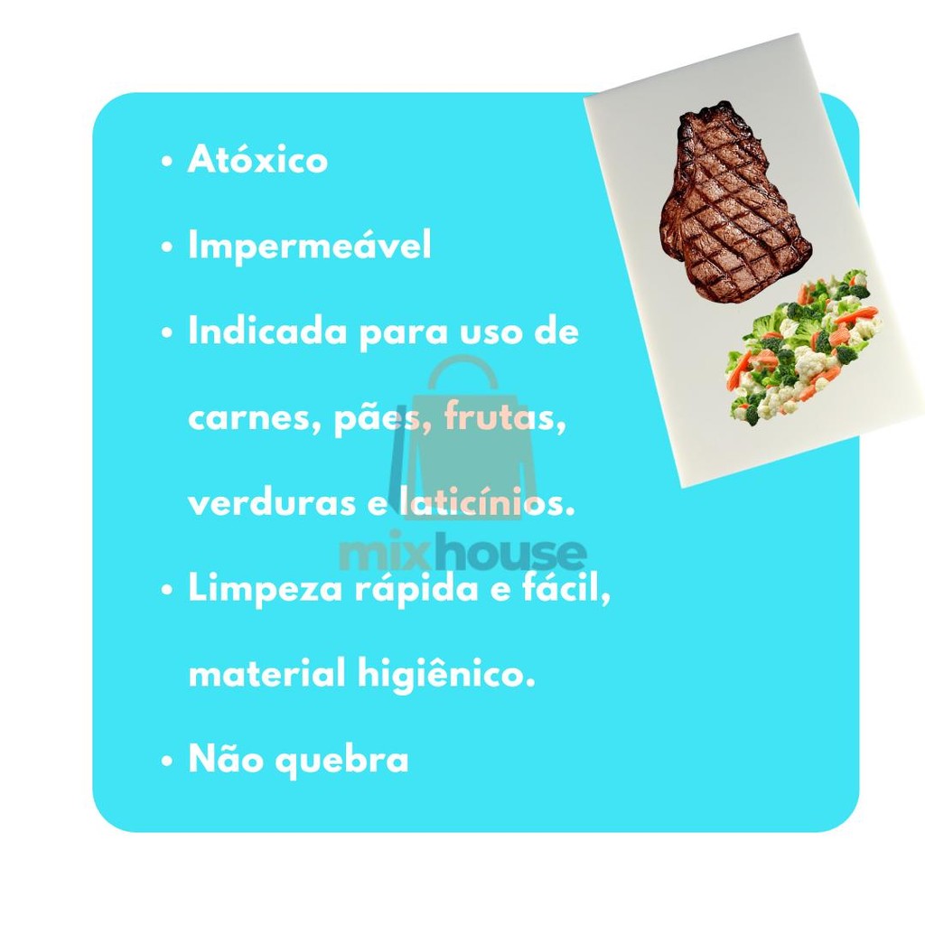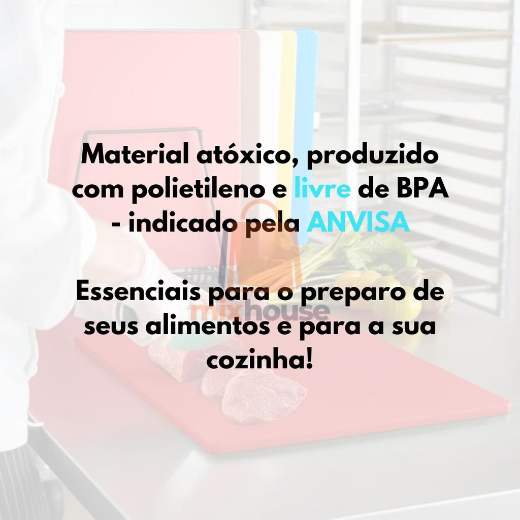 Kit De 6 Tábuas De Corte Profissional Polietileno 30x25 8MM Antibacteriana Carnes Legumes Peixes Pao