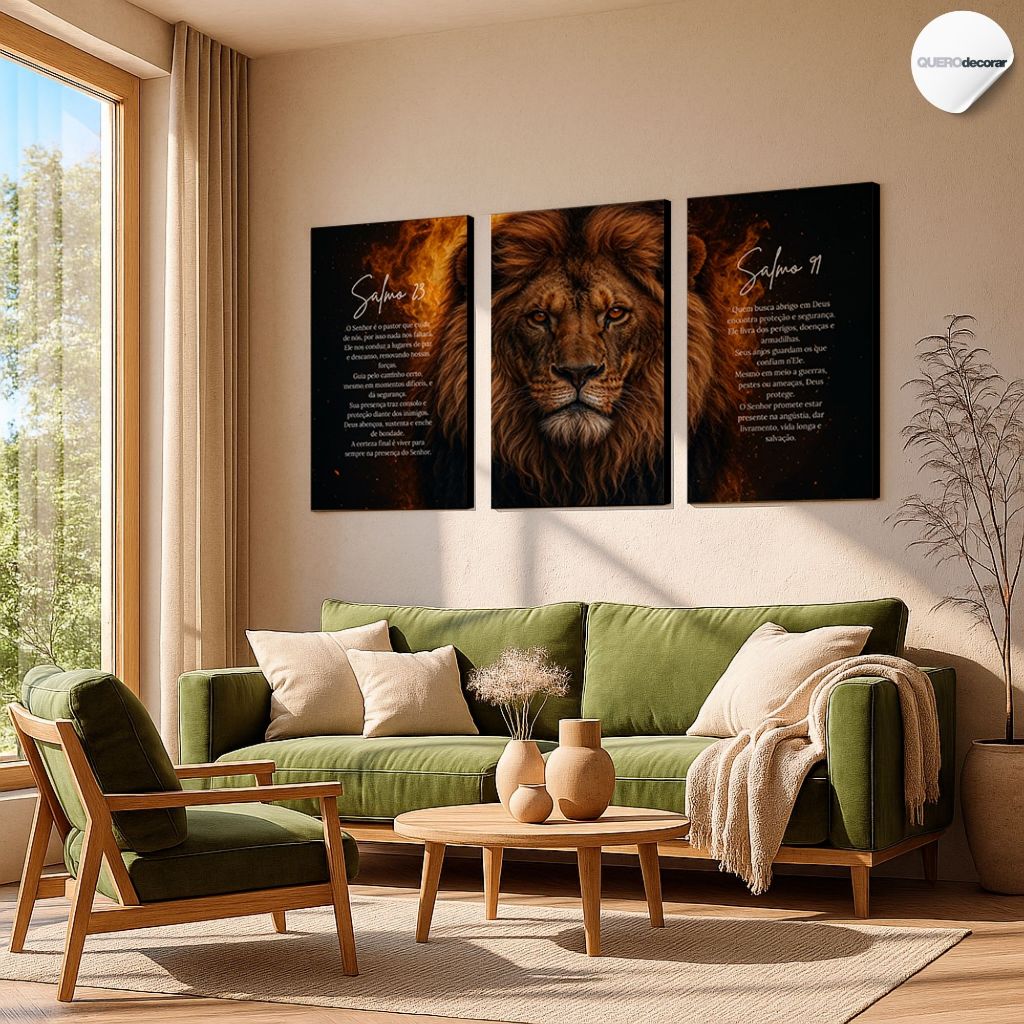Quadros Decorativos Salmo 23 e 91 Leão Fé e Força Quadro Religioso Cristão Motivacional Deus Proteção