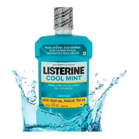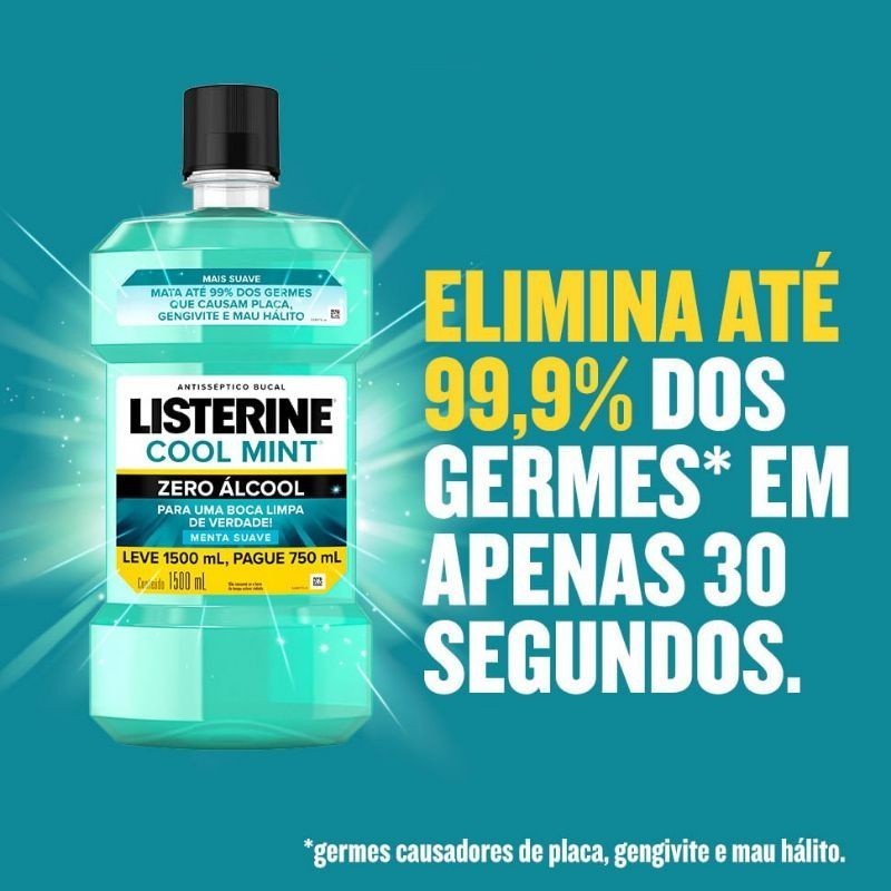 Enxaguante Bucal Listerine 1,5L Cool Mint Zero Álcool Refrescância e Limpeza Completa 1500ml
