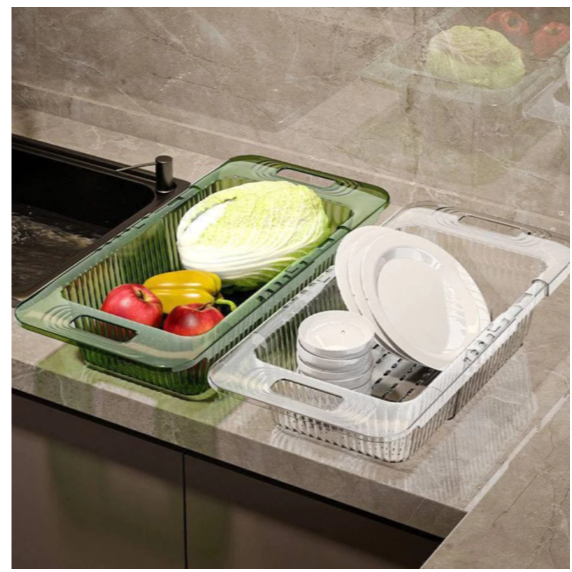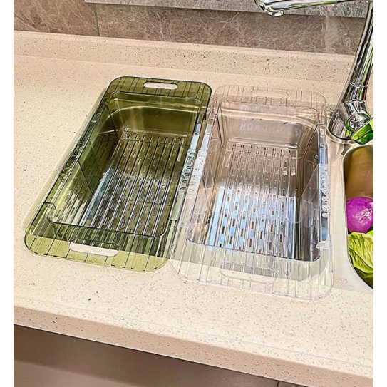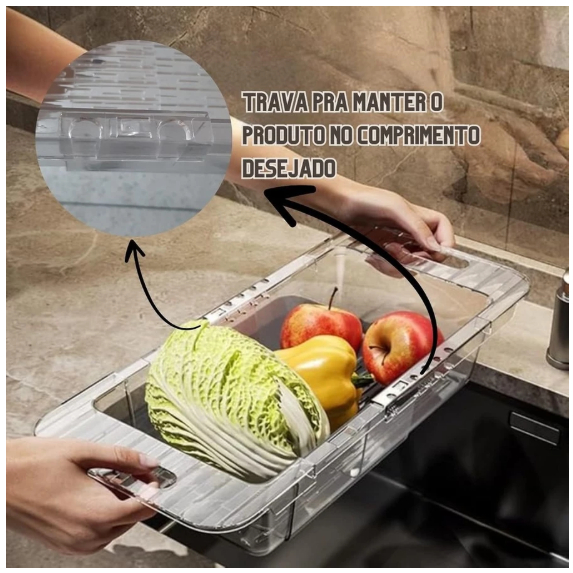 Escorredor Retrátil Ajustável Acrílico de Pia – Multiuso Frutas Legumes Cozinha