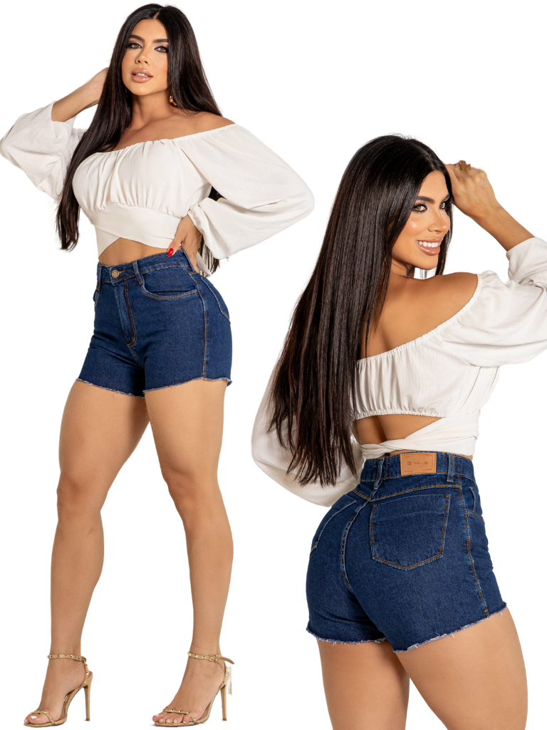 Short Feminino Jeans Cintura Alta 100% Algodão Levanta e Empina Bumbum