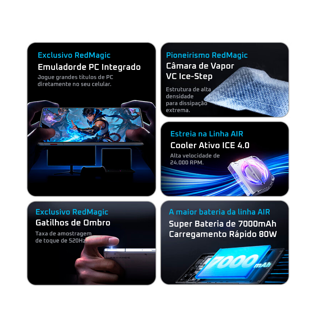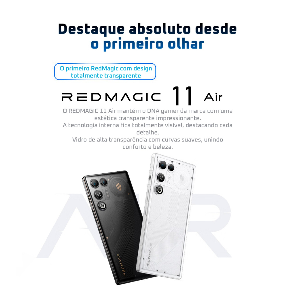 REDMAGIC 11 Air Celular Gamer 5G 12/16 + 256/512GB, Snapdragon 8 Elite, tela OLED de 6,8", 144Hz, 7000 mAh com NFC
