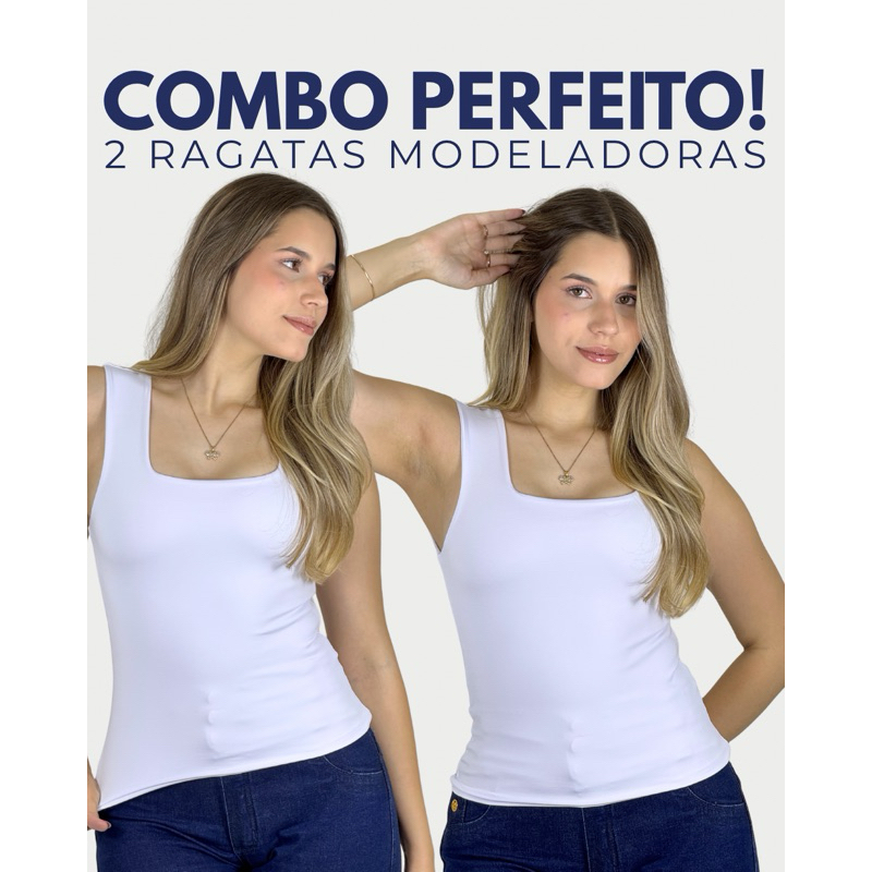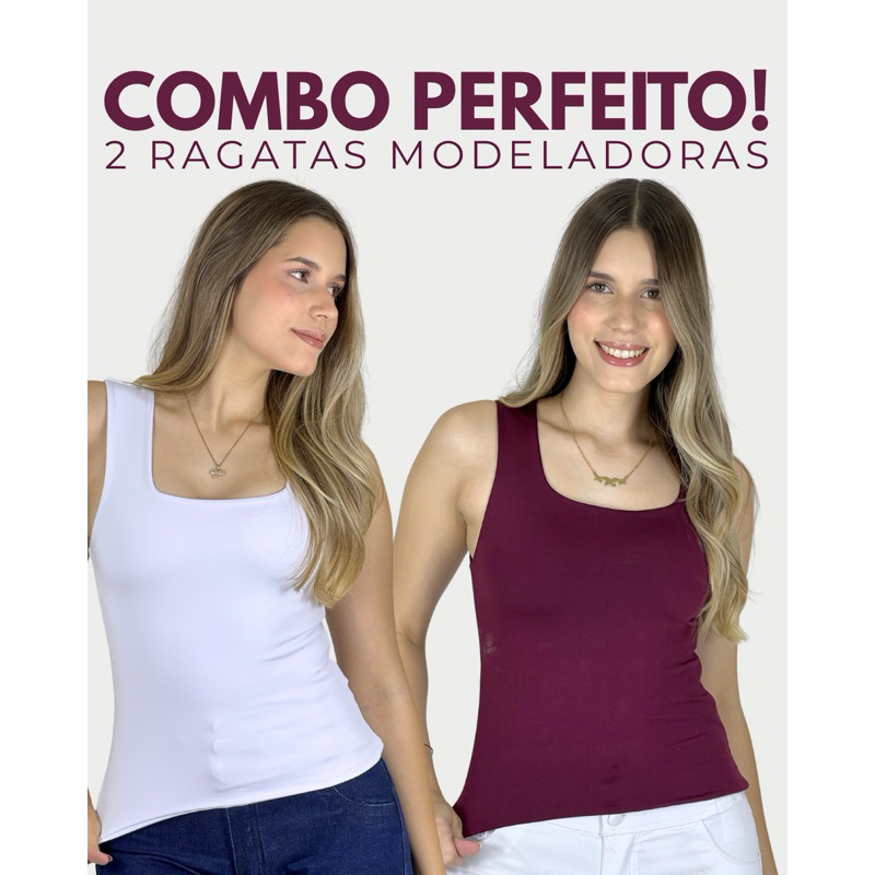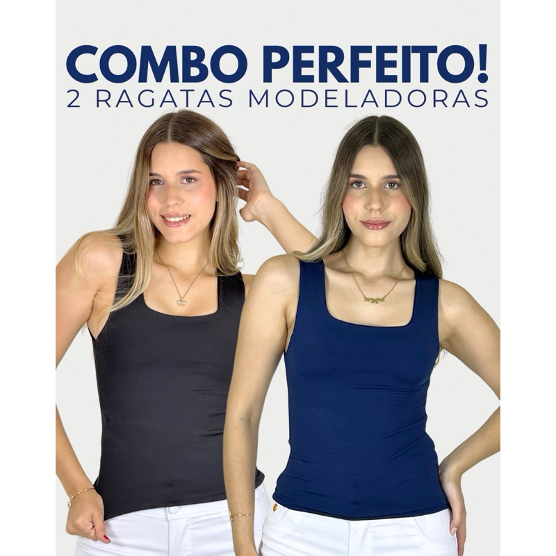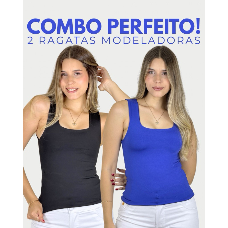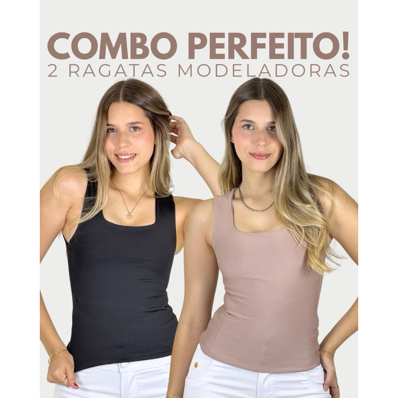 KIT COM 2 BLUSAS REGATAS MODELADORAS COM TECIDO DUPLO
