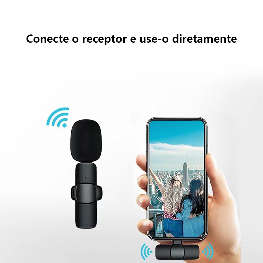 Microfone de lapela sem fio para transmissão ao vivo em celular e gravação de vídeos curtos