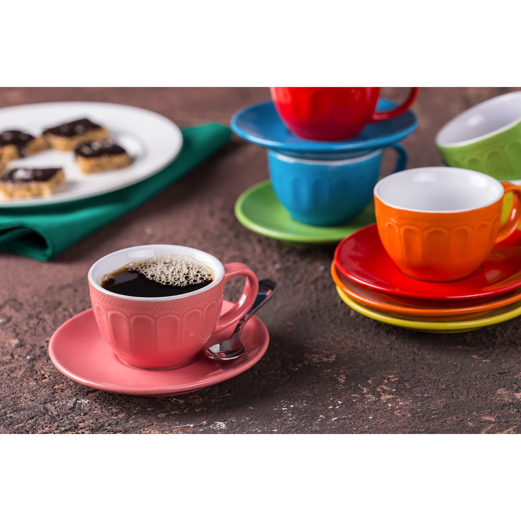 Kit 6 Xícaras de Café com Pires Mundiart 85ml – Cores Modernas e Elegantes