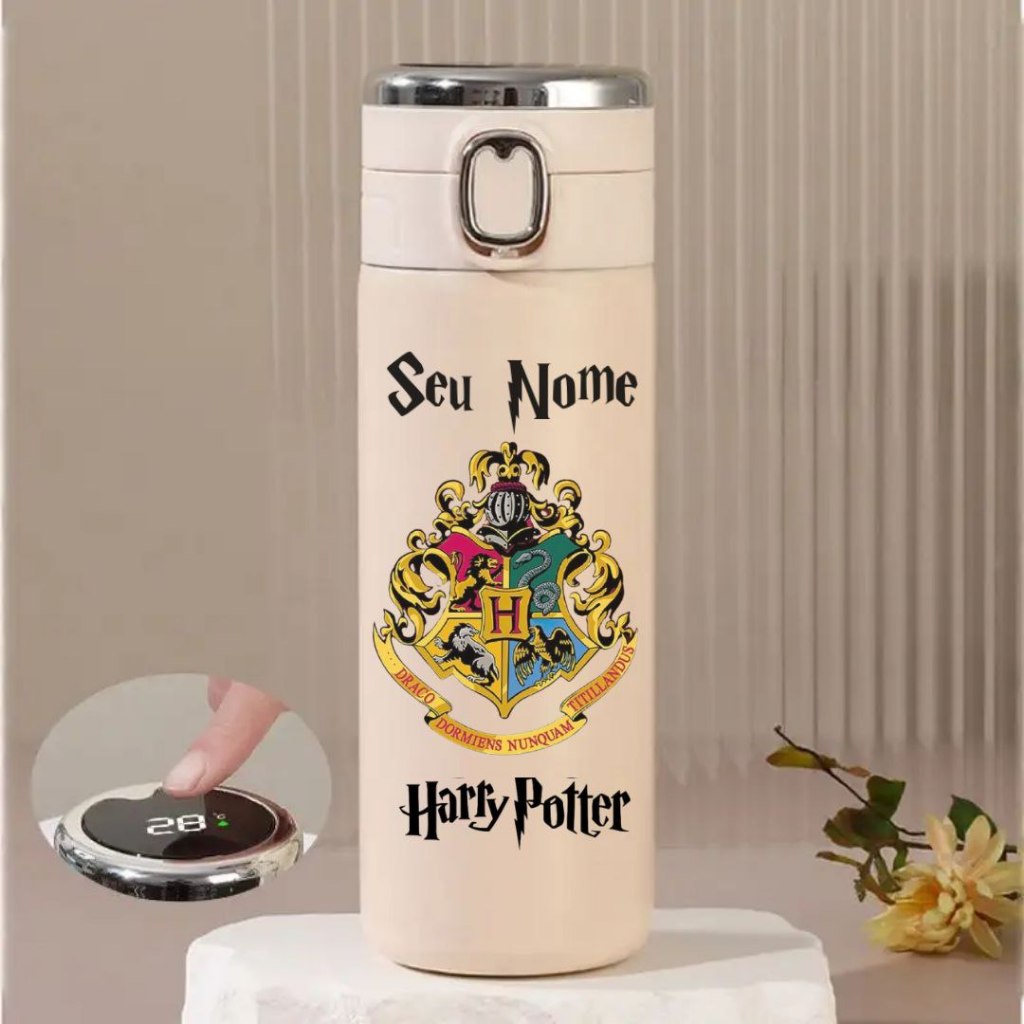 Garrafa Térmica De Aguá Harry Potter Com Medidor de Temperatura Personalizada Com Nome 420ml Presente