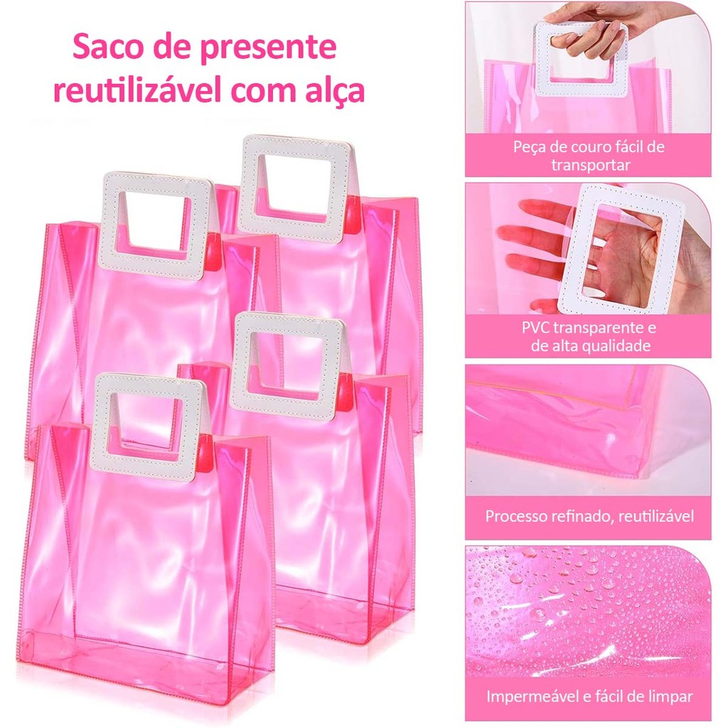 5/10/15 sacolas de PVC rosa ideais para compras boutiques casamentos aniversários chás de bebê 20x18x10cm