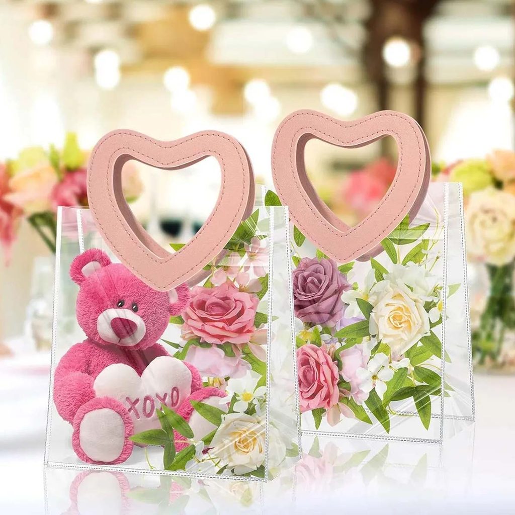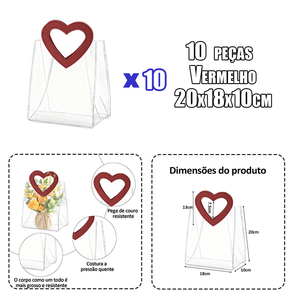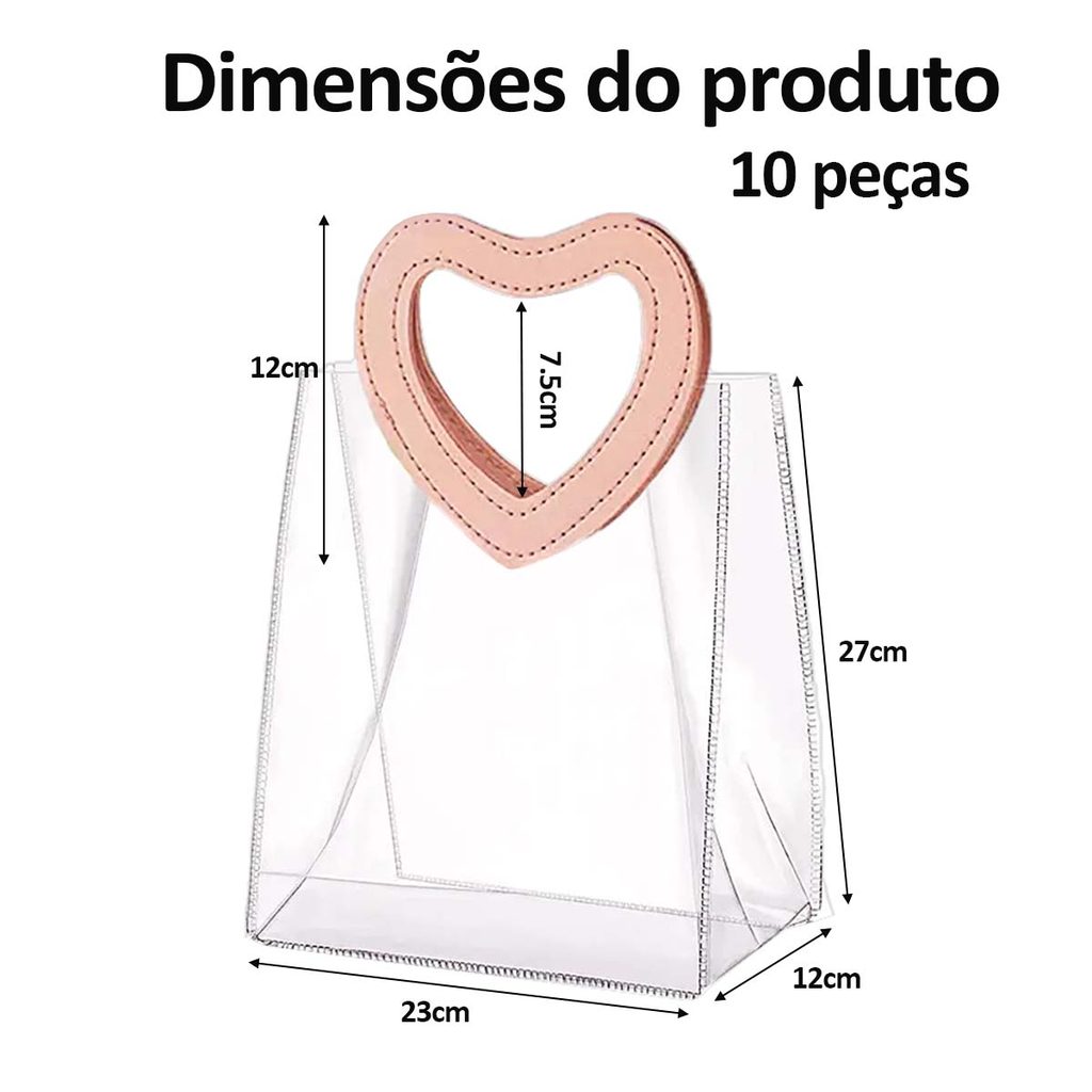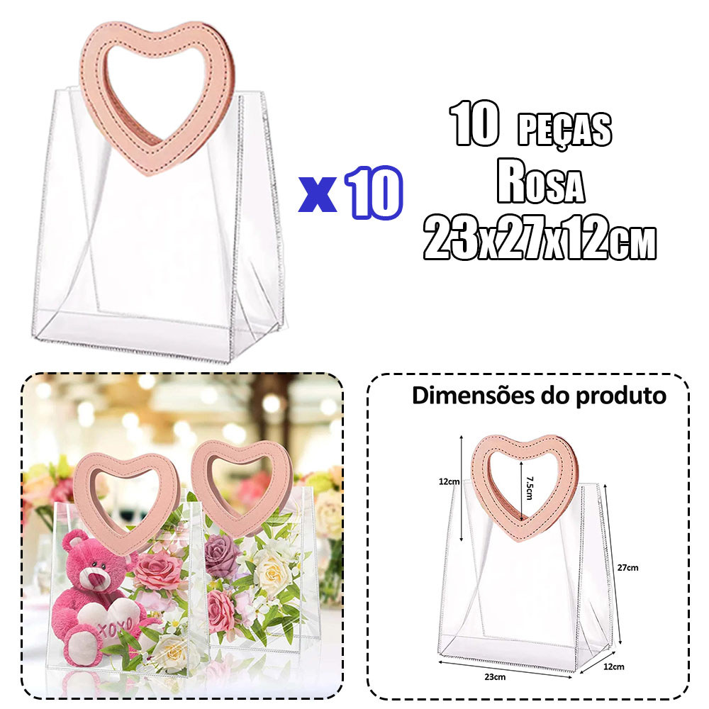 Kit 10 Saco de presente transparente em PVC com alças reutilizável saco em forma de coração festas cor tamanho opcional