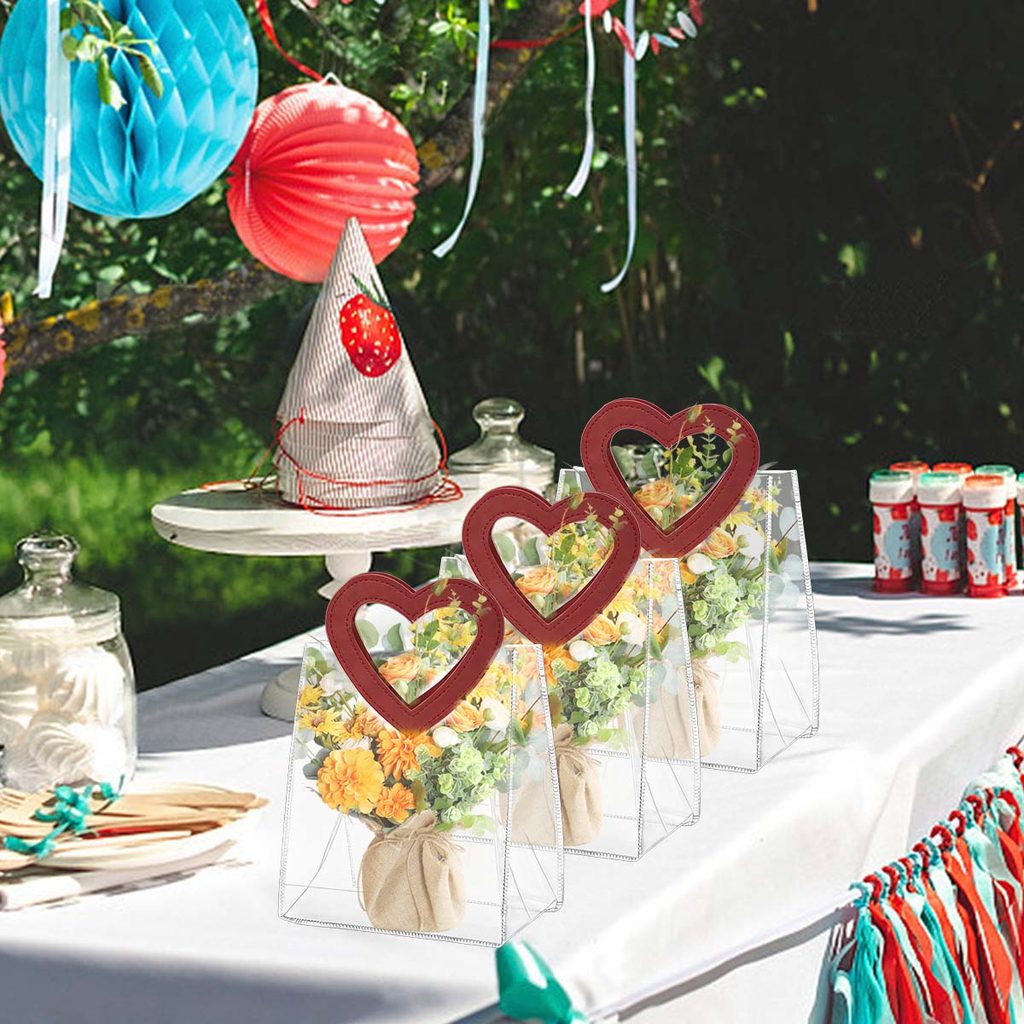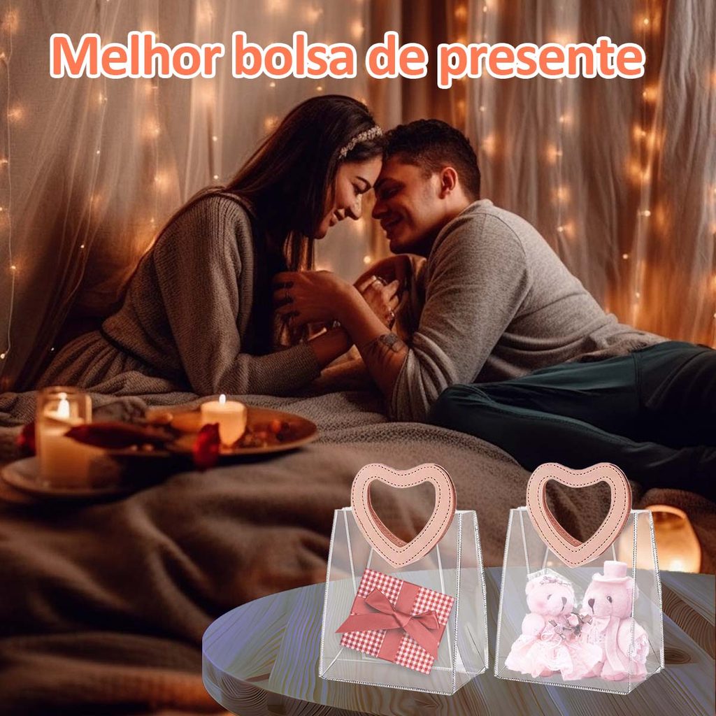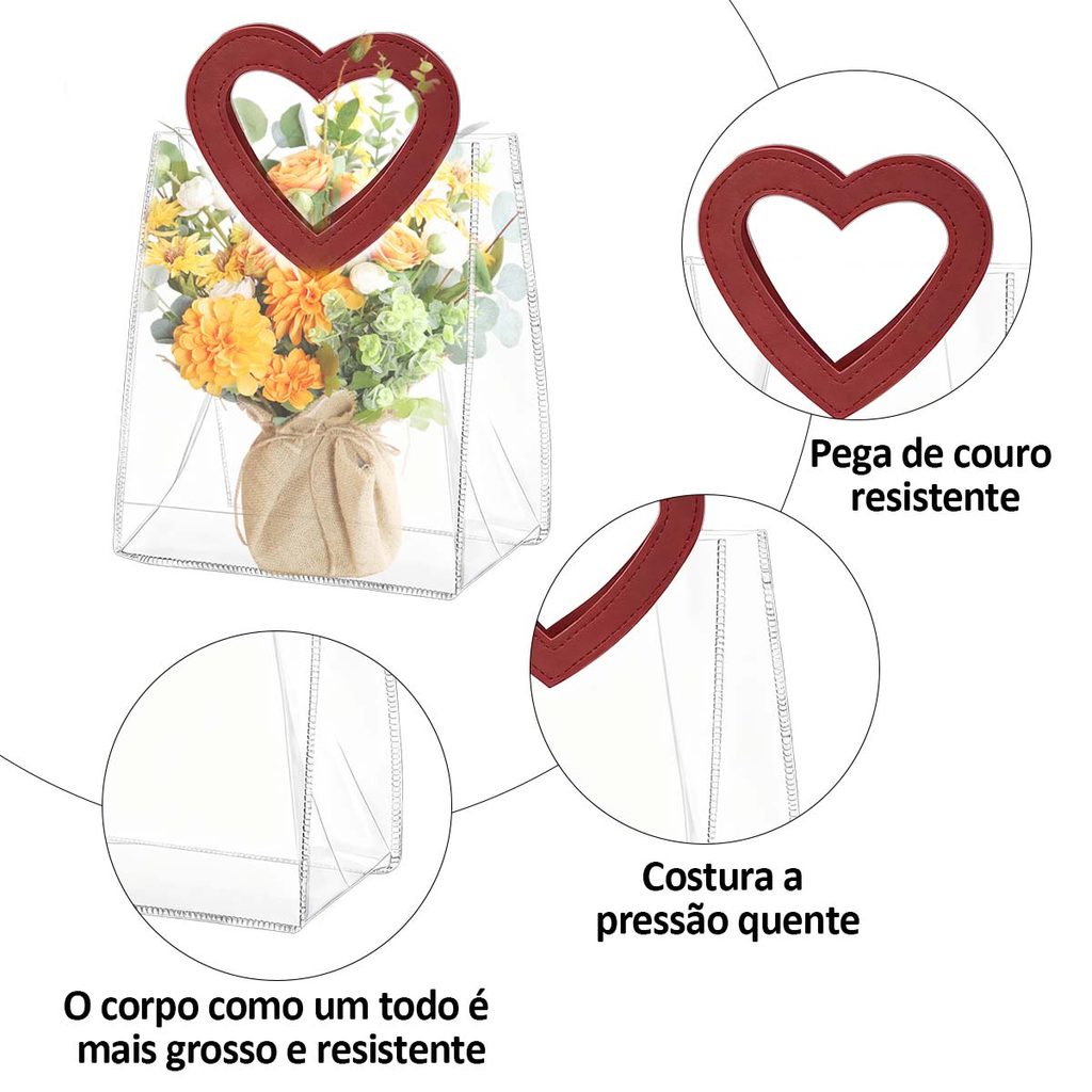 Kit 10 Saco de presente transparente em PVC com alças reutilizável saco em forma de coração festas cor tamanho opcional