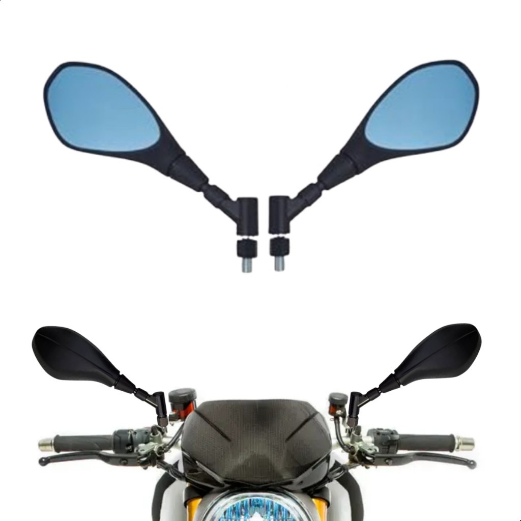 Par Retrovisor LENTE AZUL F800 Bmw Giro Haste Curta 360 Rosca Yamaha (Só Serve Para Motos Yamaha