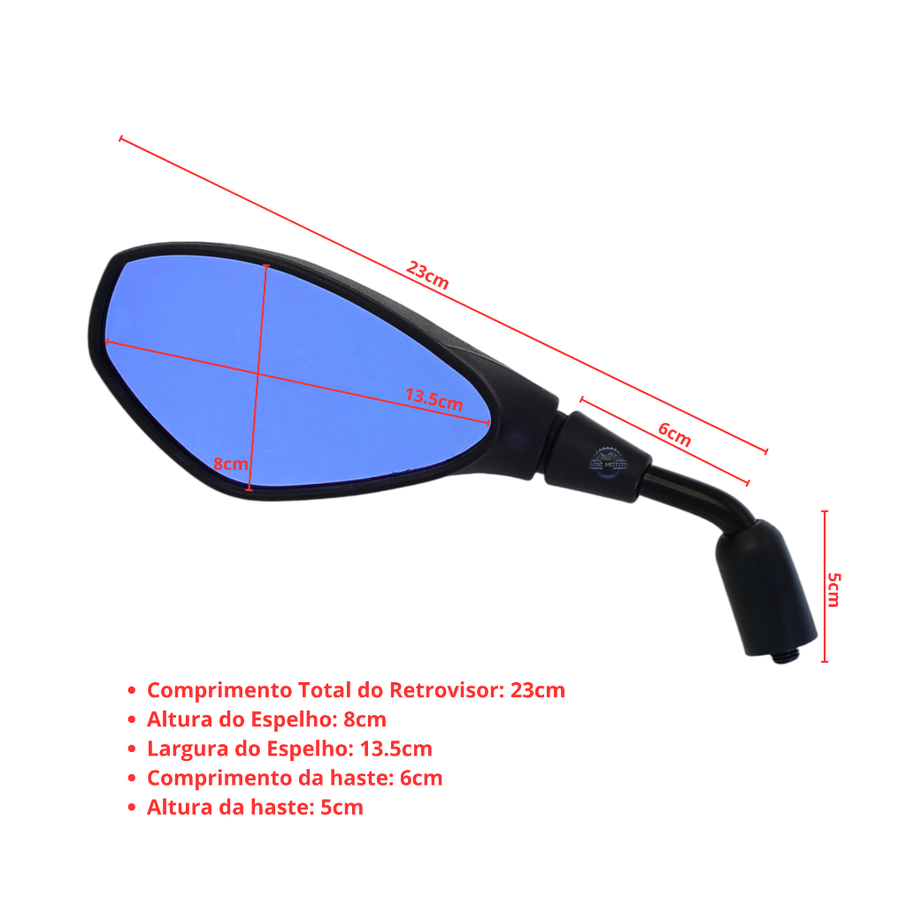 PAR DE RETROVISOR BMW FIXO HASTE CURTA ROSCA HONDA COM LENTE AZUL