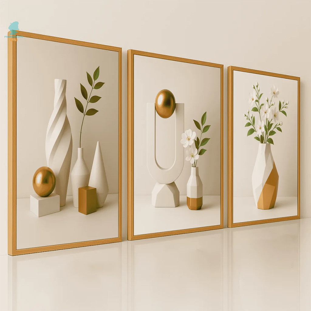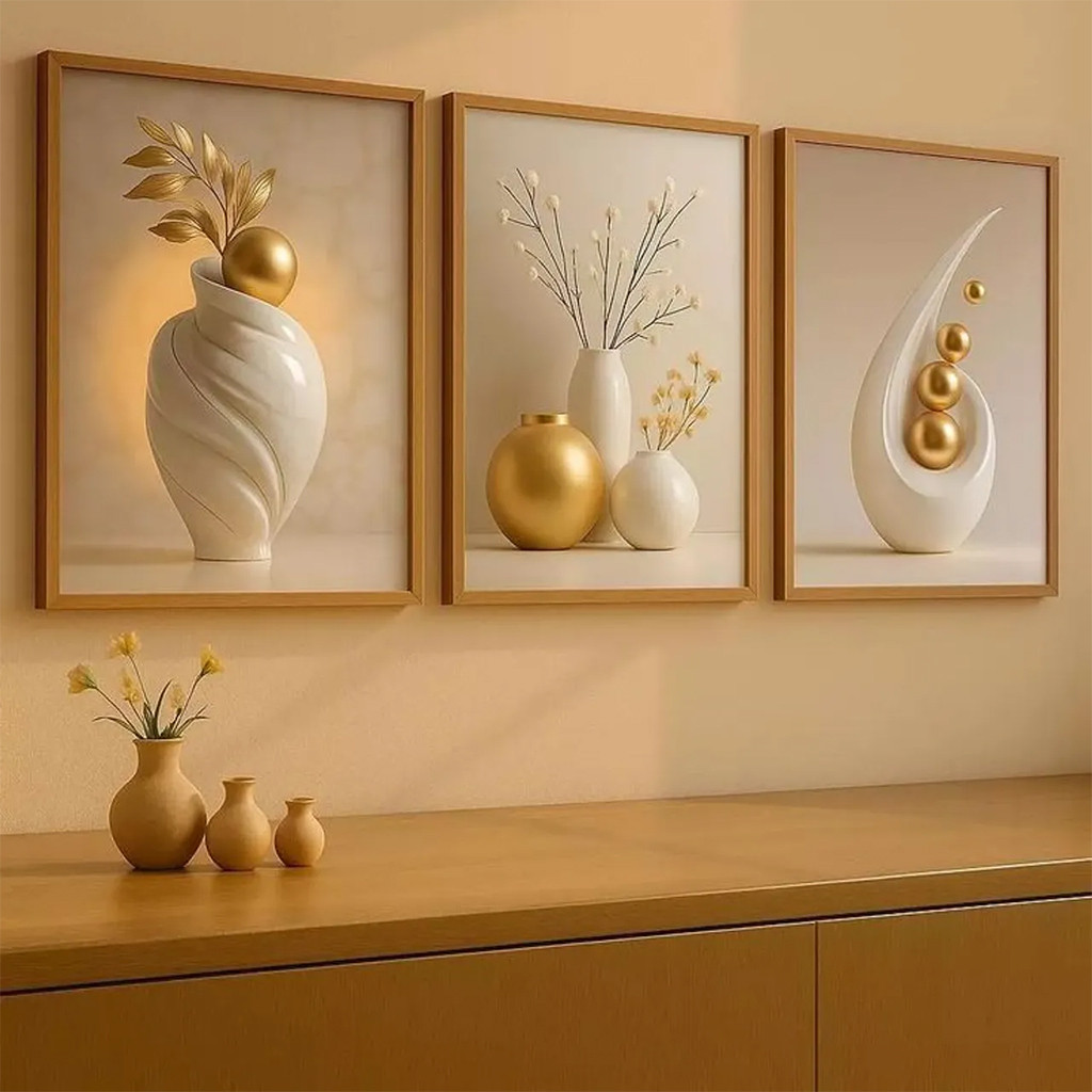 KIT 3 Decorative Picture Frame Modern Geometric Abstract Gold Sculpture Luxury Living Room Wall Decoration
