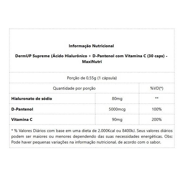 DermUP Supreme - Ácido Hialurônico / D-Pantenol / Vitamina C (30 caps) - Padrão: Único